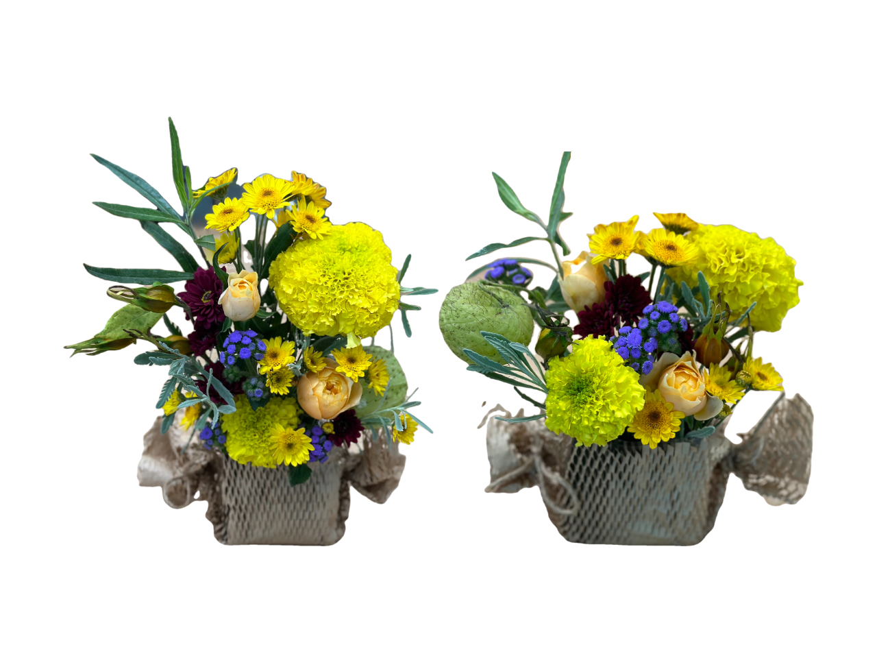메리골드, 소국 등 다양한 가을 꽃을 활용해서 만들어보았습니다.