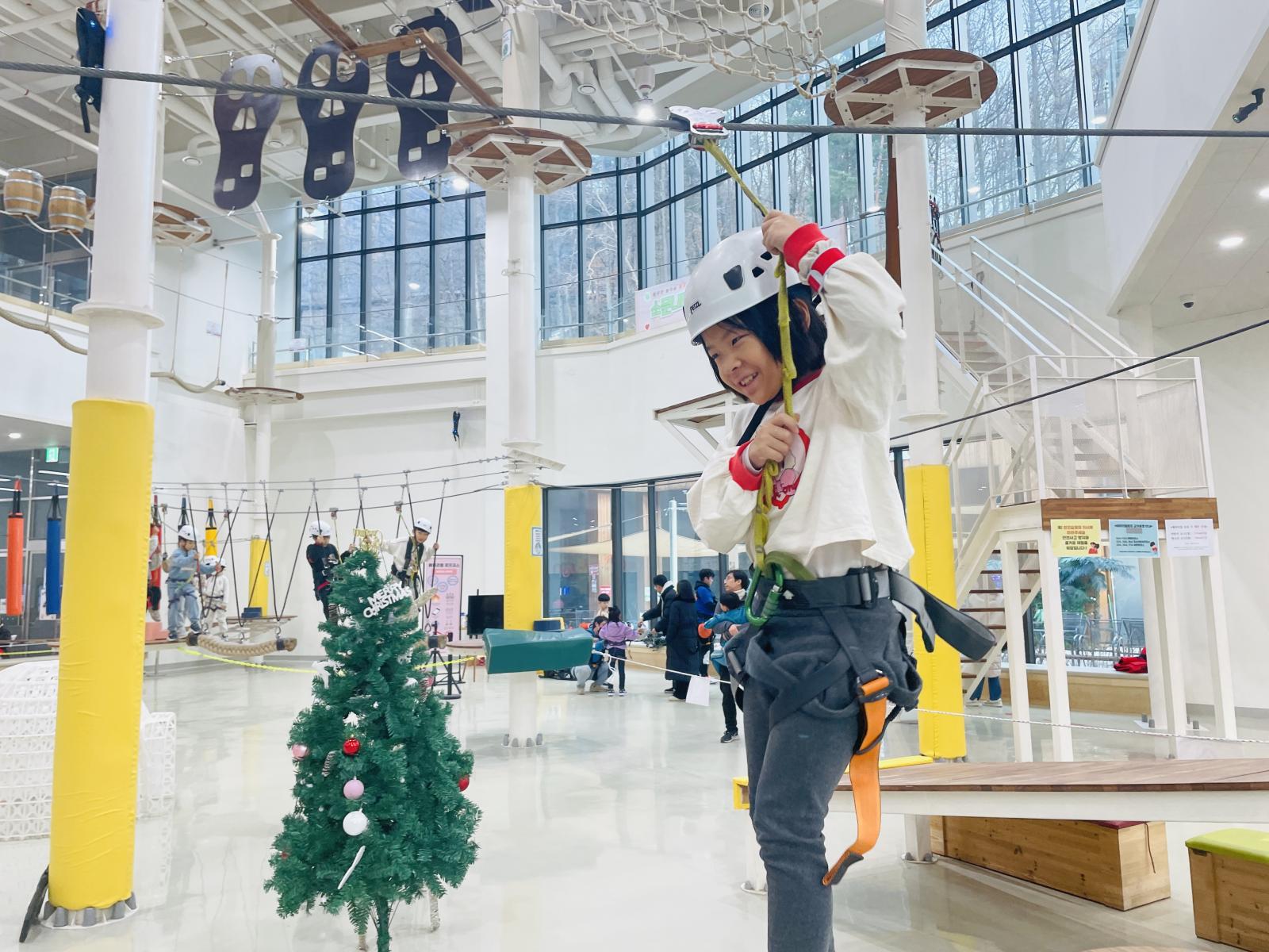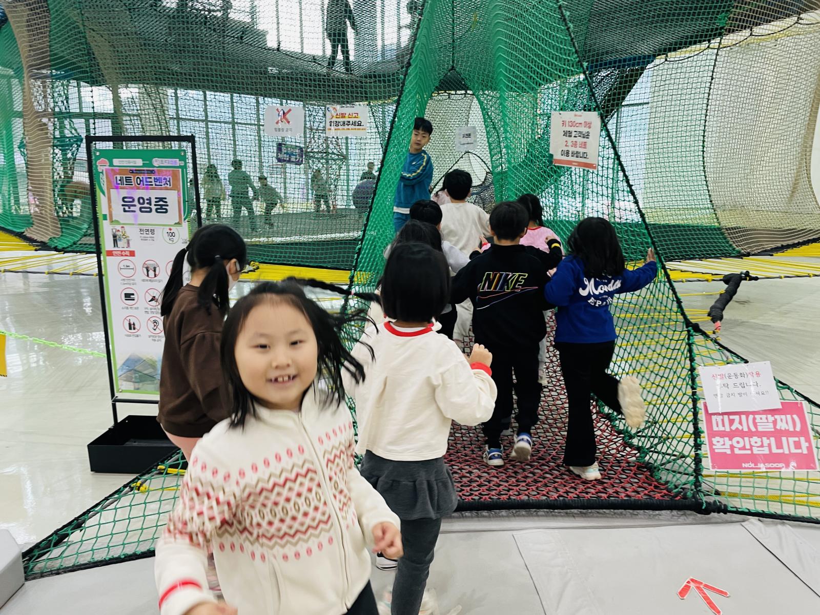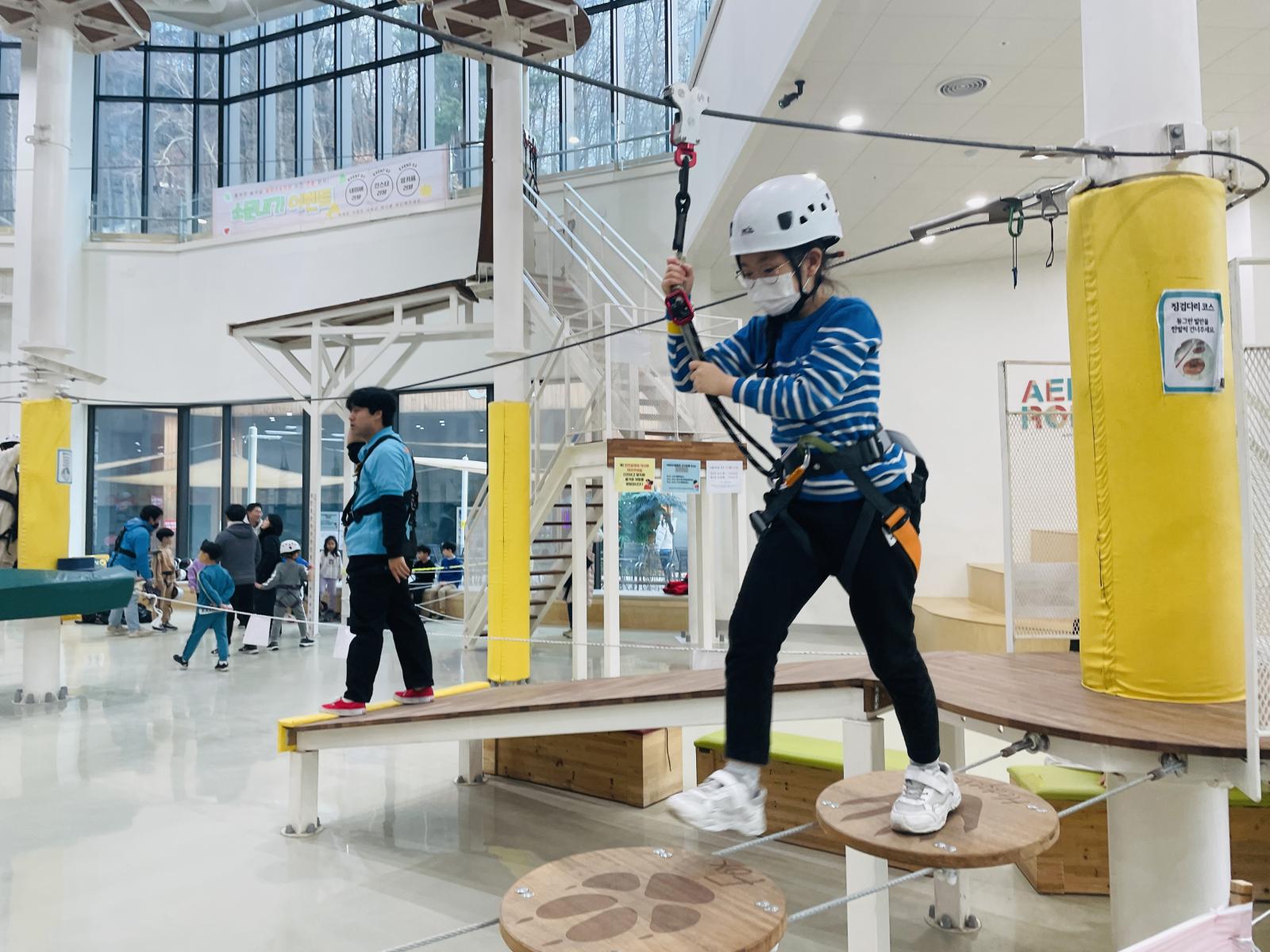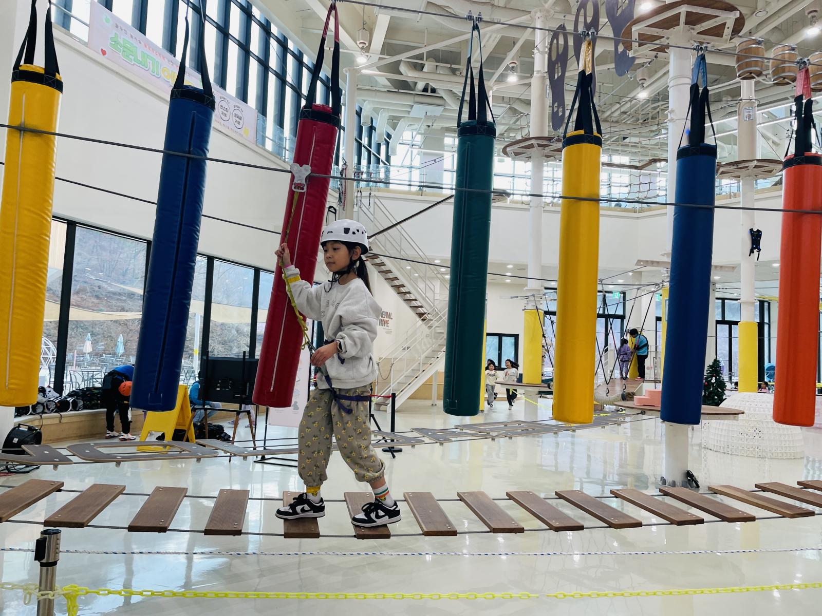 형형색색 정말 멋진 체험존에 가장 꼭대기까지 올라간 용감한 친구들이 보여요!