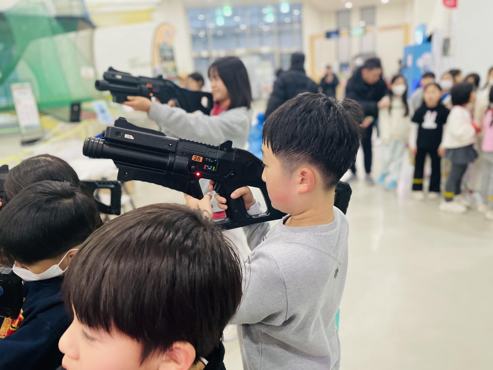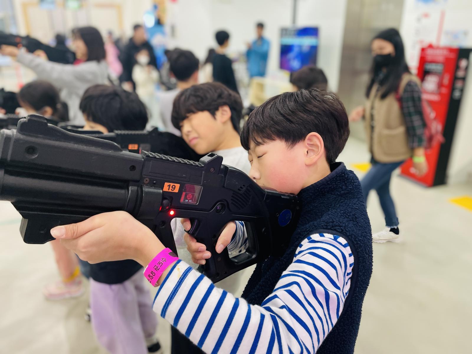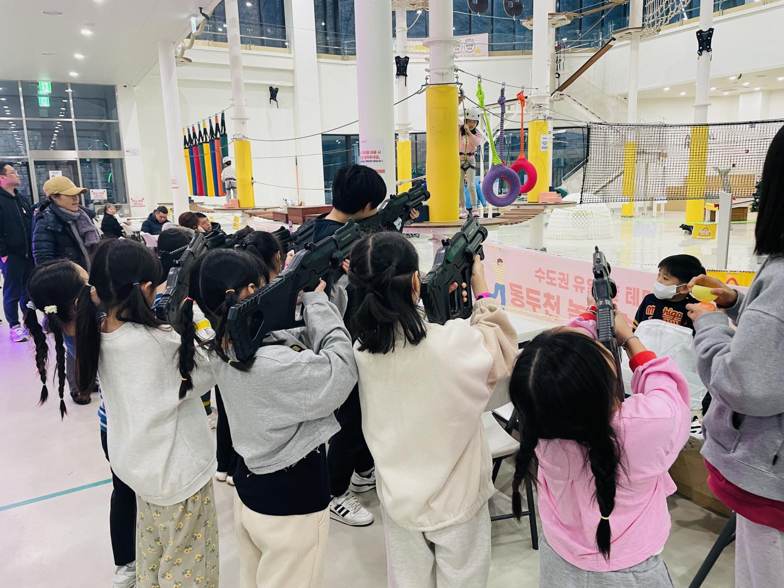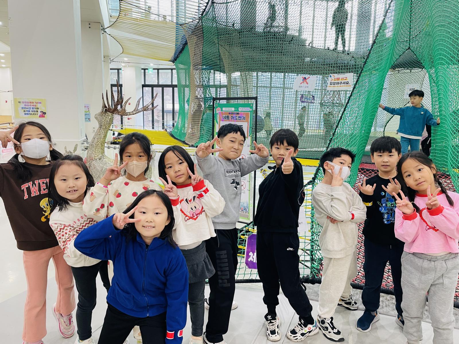 형형색색 정말 멋진 체험존에 가장 꼭대기까지 올라간 용감한 친구들이 보여요!