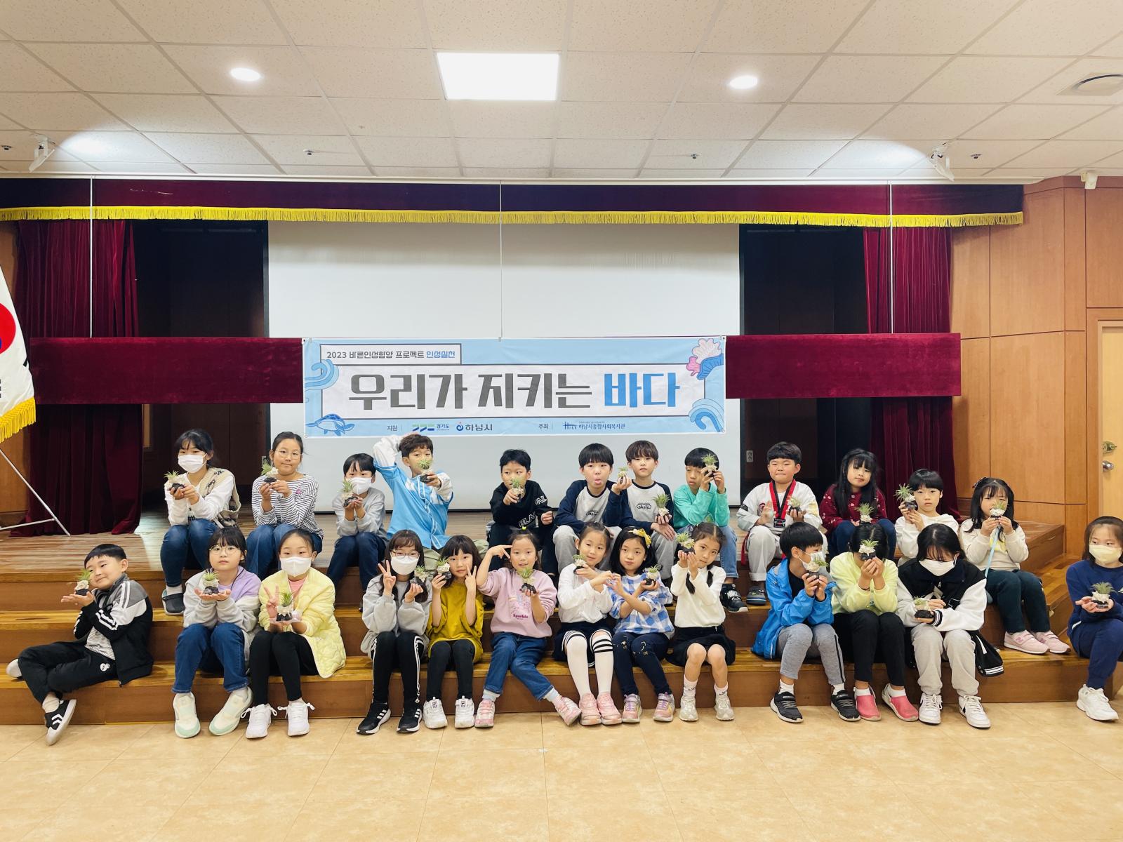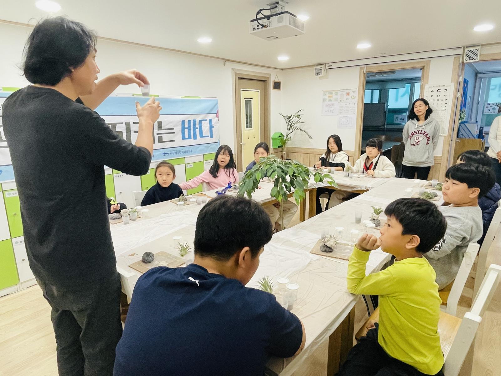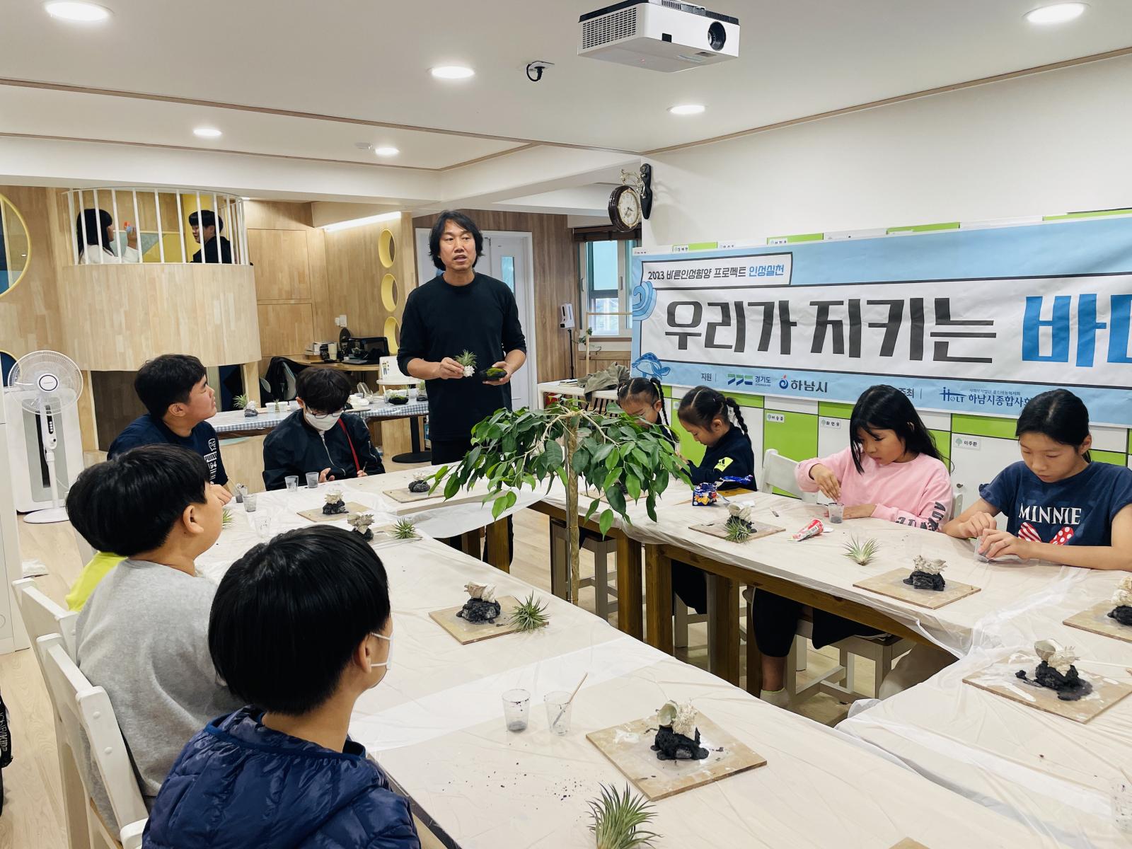 "바다가 아픈지 몰랐는데 재미있게 화분도 만들고 바다고 지킬 수 있어서 좋았어요"