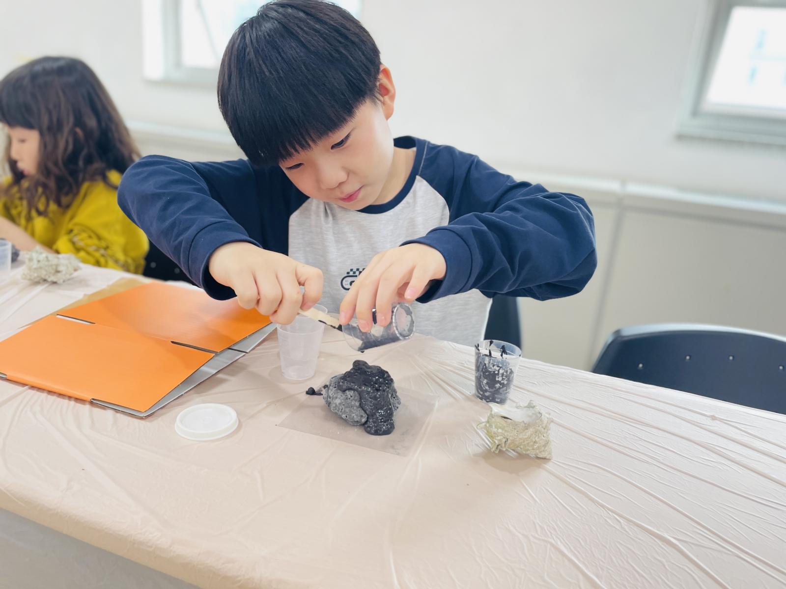 구멍이 뽕뽕 뚫린 현무암도 아이들이 직접 만들 수 있었어요~!