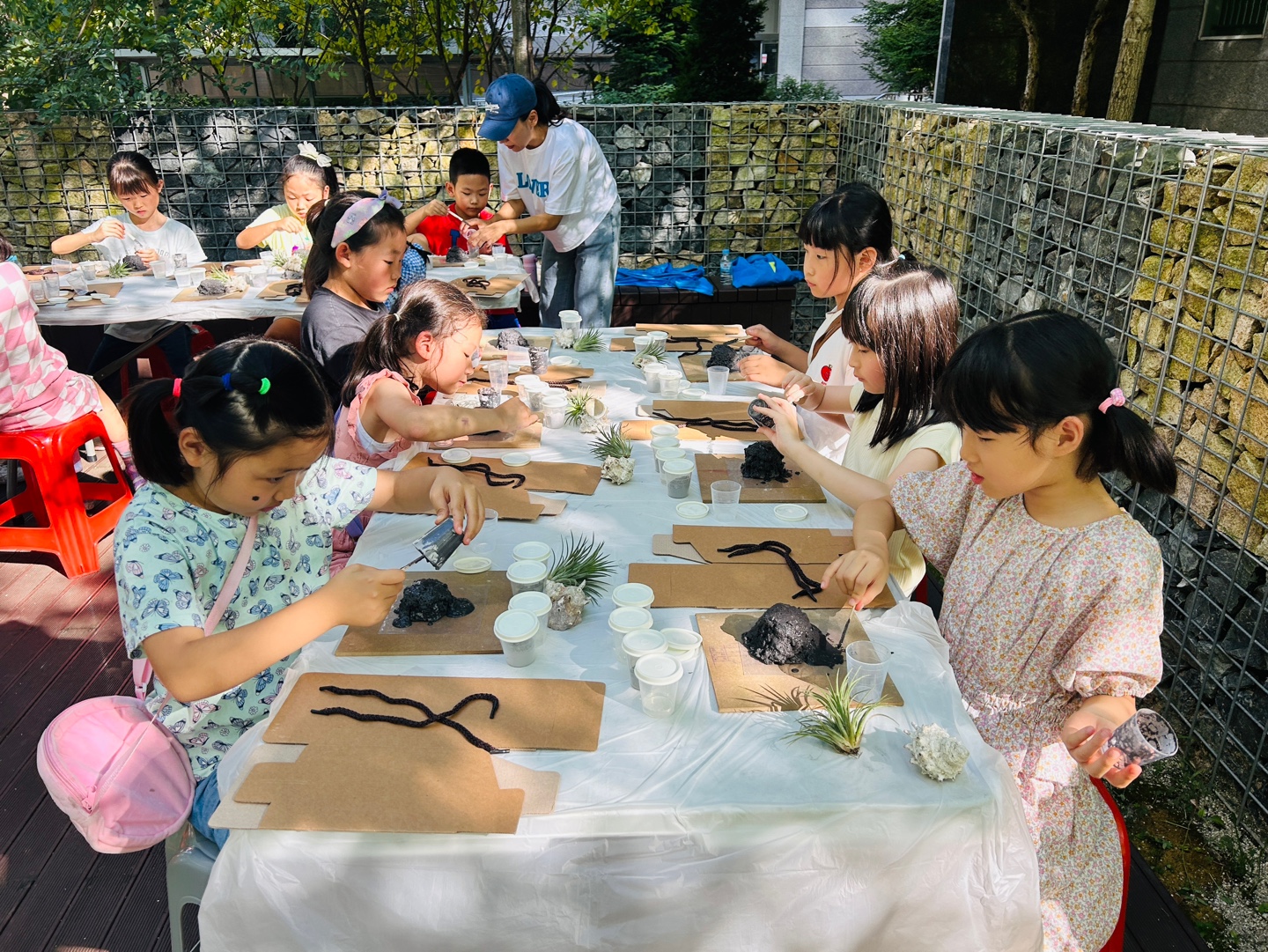 집중해서 멋지게 현무암 받침을 만들었어요~!