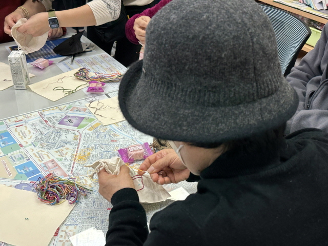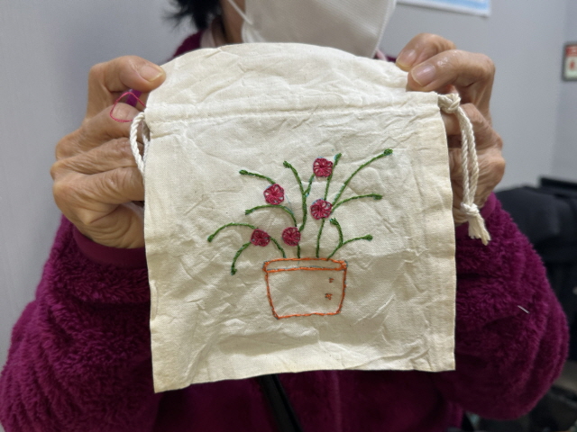 어느정도 할 수 있게 되면 파우치에 자수를 새겨요!