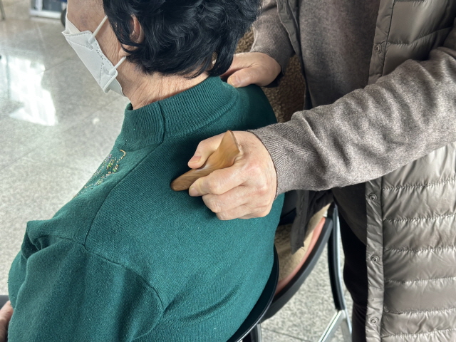 어르신: "아이고 시원~허이 좋네요. 어깨가 뭉쳐있어서 아팠는데 나은것 같아요~고마워요~"