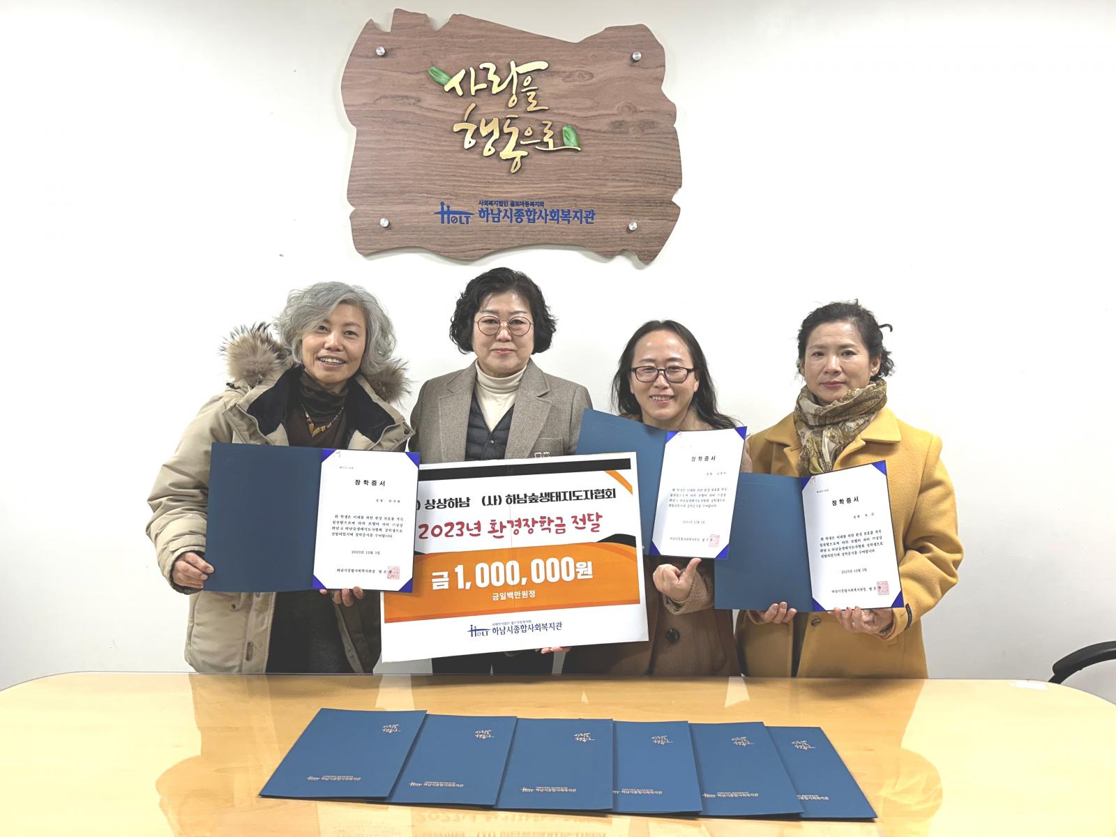 (주)상상하남 & (사)하남숲생태지도자협회 환경장학금 전달 작성일 : 2023.12.05 | 조회수 : 3187 하남시 아름다운 자연을 체험과 놀이를 통해 아이들이 쉽게 알 수 있도록 힘을 쓰시는(주)상상하남과 (사)하남숲생태지도자협회에서 함께 복지관에 환경장학금을 전달해주셨습니다.하남을 사랑하고 함께 어우러지기를 바라는 아동들에게 소중히 잘 전달하였습니다. 감사합니다!!