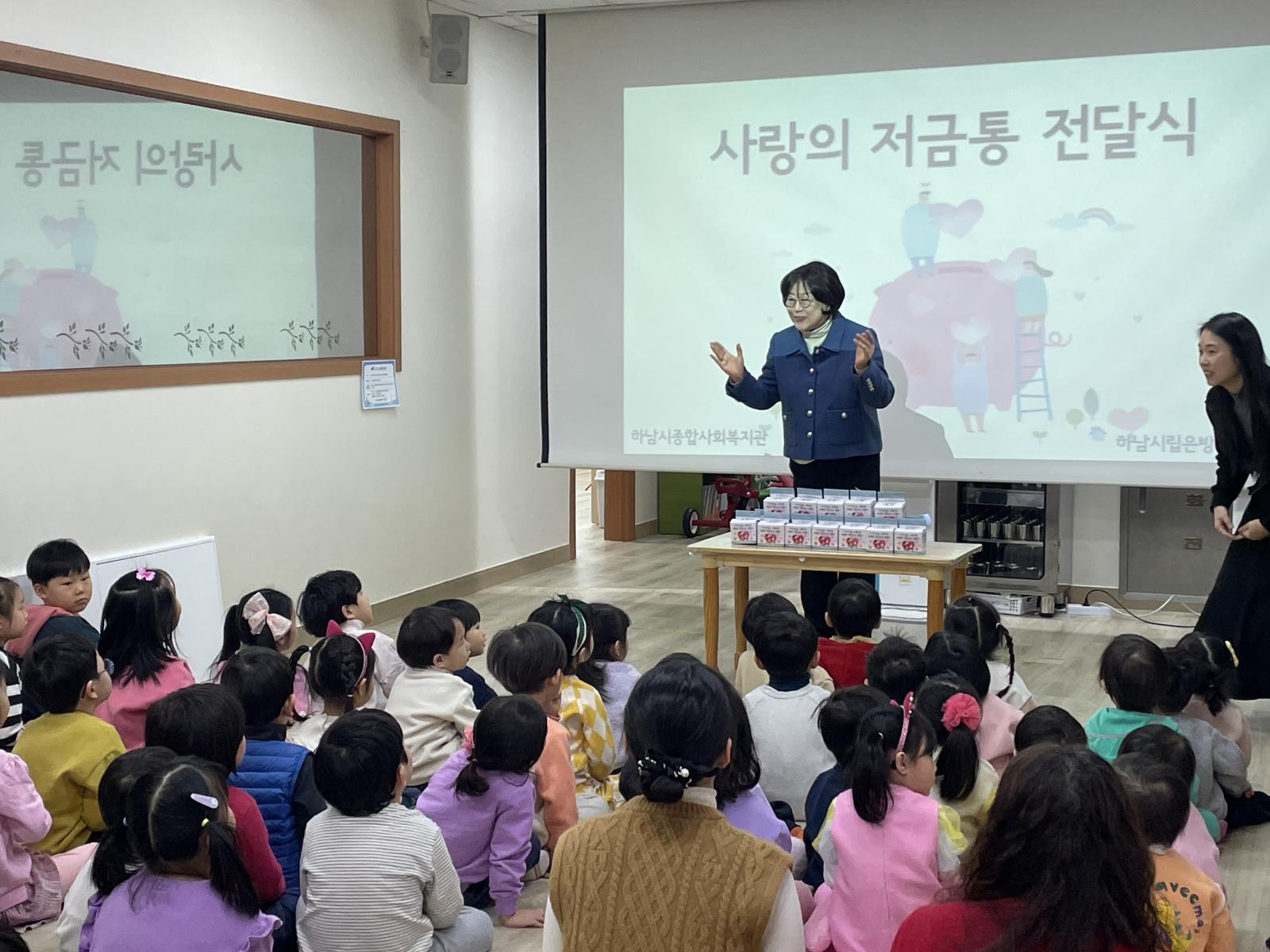 은방울어린이집 후원금 전달 작성일 : 2024.01.24 | 조회수 : 3614 2024년 새해에 은방울 어린이집 아동들이 한마음 한뜻으로복지관 희망 나눔 저금통에 마음을 담아 후원금을 전달하였습니다.소중하게 모인 마음을 뜻깊은 자리에 환하게 사용하도록 하겠습니다.감사합니다!!