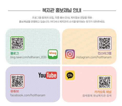 각 복지관 채널을 통해서도 확인하실 수 있습니다!