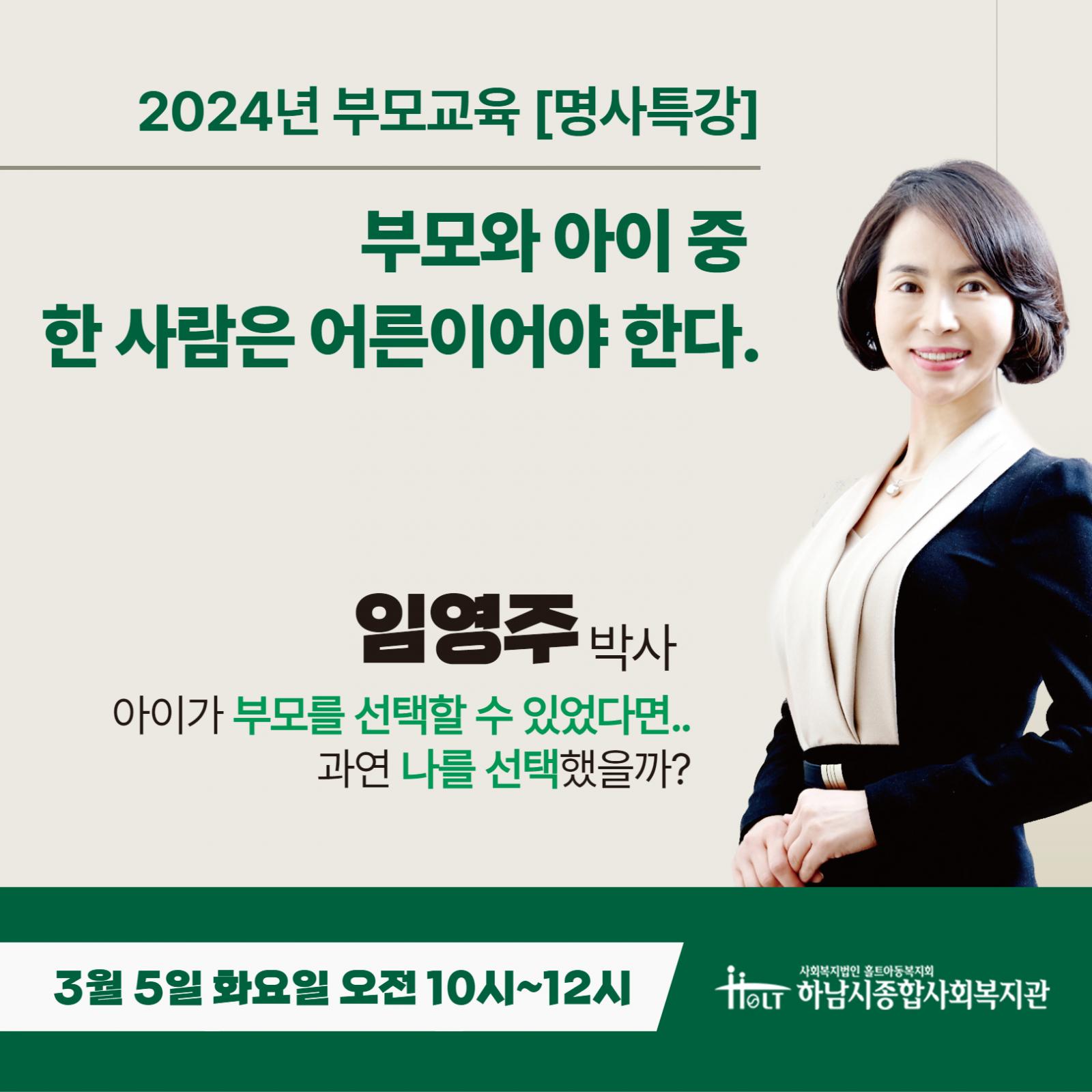 이번 부모교육은 '임영주' 박사님의 저자직강으로 진행되었습니다!