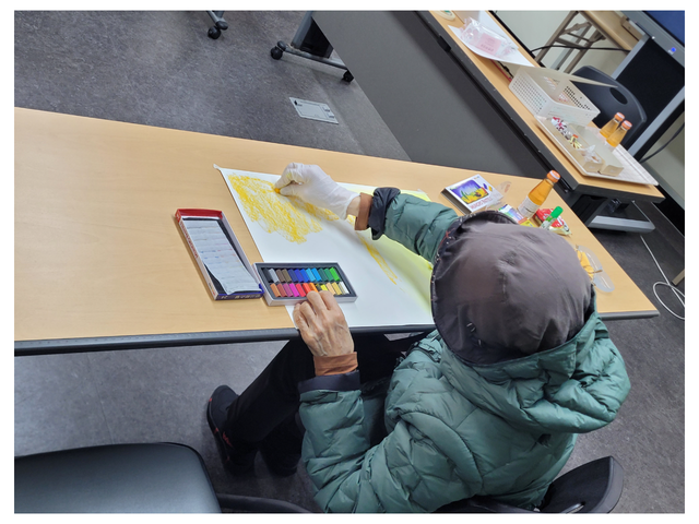 떠오르는 것에 대해 자유롭게 파스텔로 색칠하는 시간을 가져보았습니다.