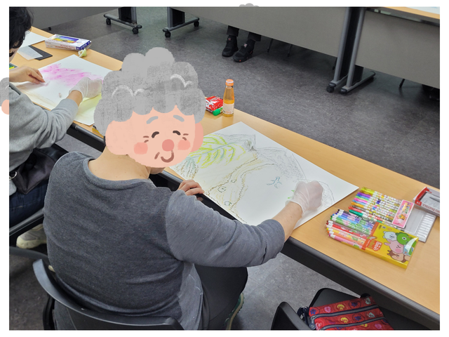 미술치료 선생님께서는 참여자분들에게 색깔만 칠하셔도 된다고 하셨는데,