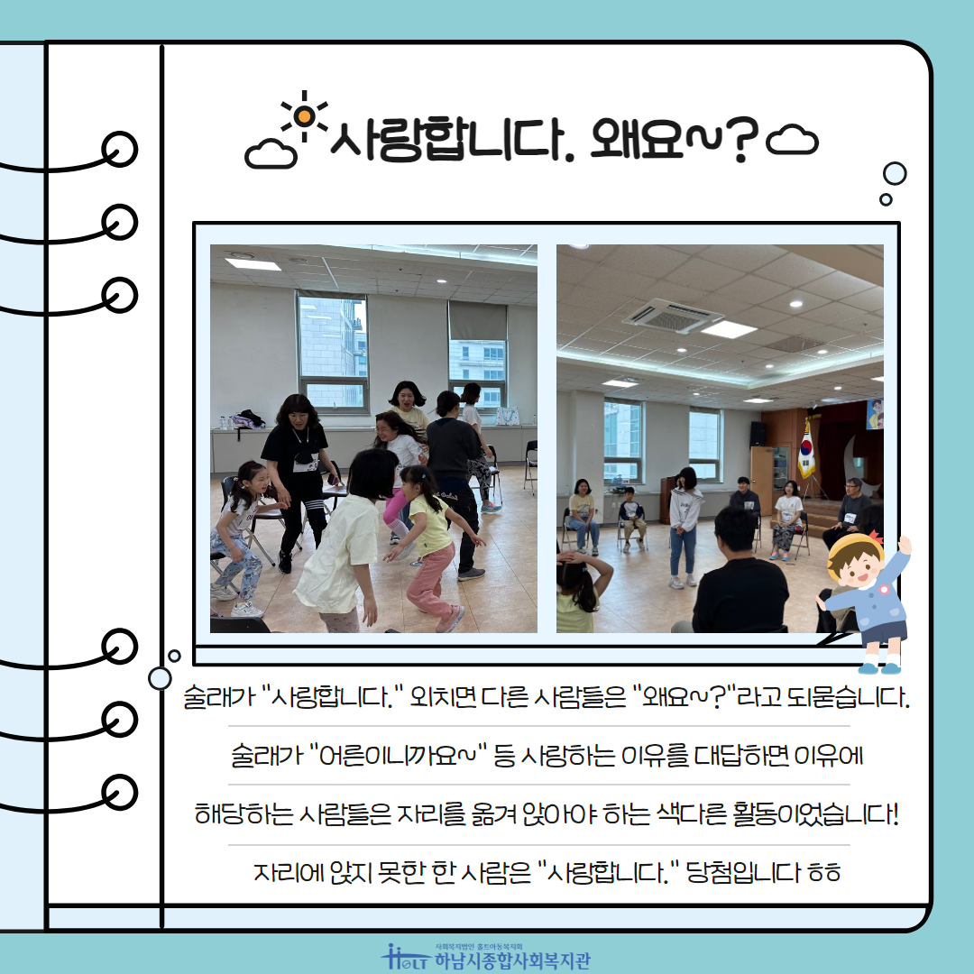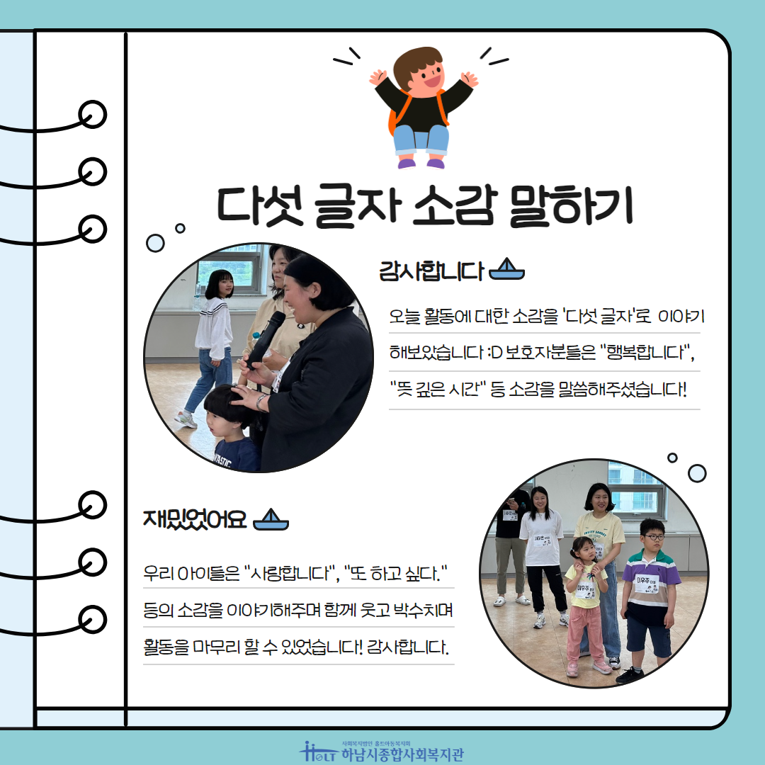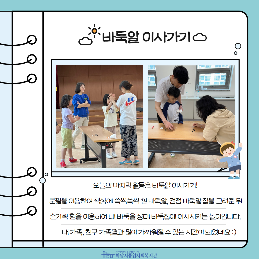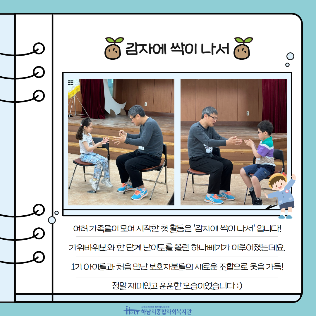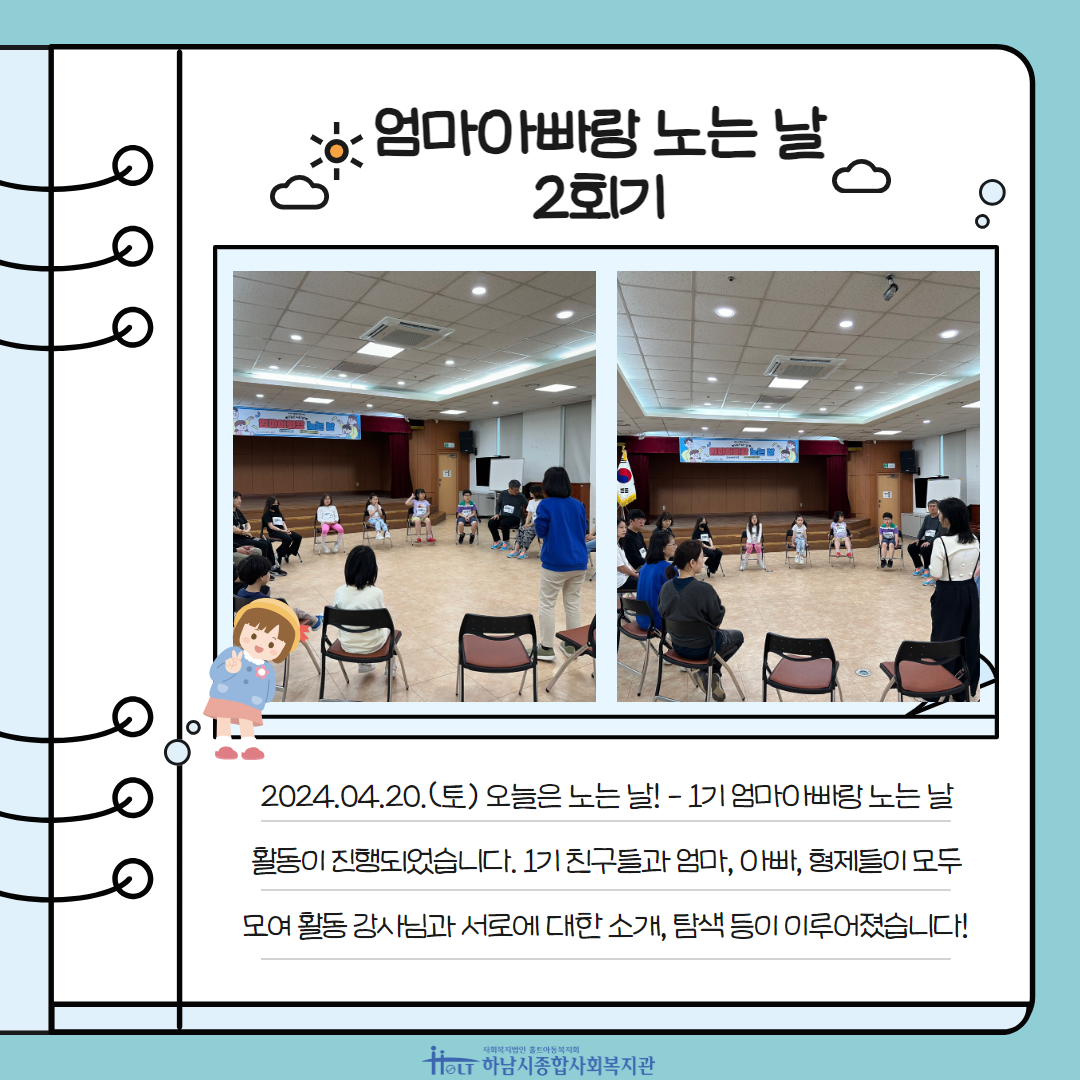 놀자! 하남에서! 2024 어린이날 대축제 2024-05-07 조회수 3,307 하남라이온스클럽 후원물품 전달 2024-05-03 조회수 2,570 케이워터기술(팔당권사업소)와 업무협약 체결! 2024-05-02 조회수 2,870 사람과 사람 사이를 잇다 ‘사이사이’ 홍보 및 지역사회 인식 캠페인 진행 2024-05-01 조회수 1,840 2024 노년의 소중하고 풍성한 만남 '노년소풍' 2회기 실시 2024-04-30 조회수 5,147 2024 하남먹거리 '식사는 하셨어요?' 사업실시 2024-04-26 조회수 3,569 오븐엔조이 지에라반 4월 제과제빵 후원 2024-04-23 조회수 1,700 가족문화체험 [영화보러가자] 쿵푸팬더4 관람 2024-04-23 조회수 3,615 [오늘은 노는 날! - 1기] 엄마아빠랑 노는 날 진행(2회기) 2024-04-23 조회수 2,908