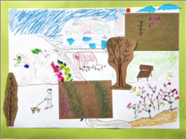 그린 나무와 봄을 오려서 전지에 붙여줌으로써