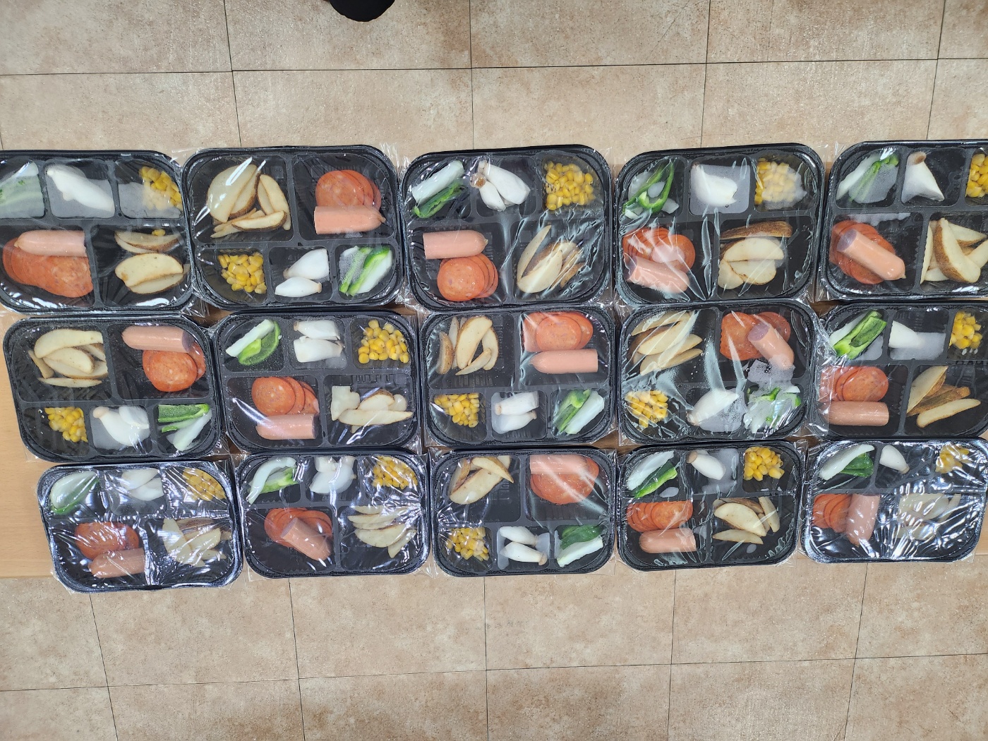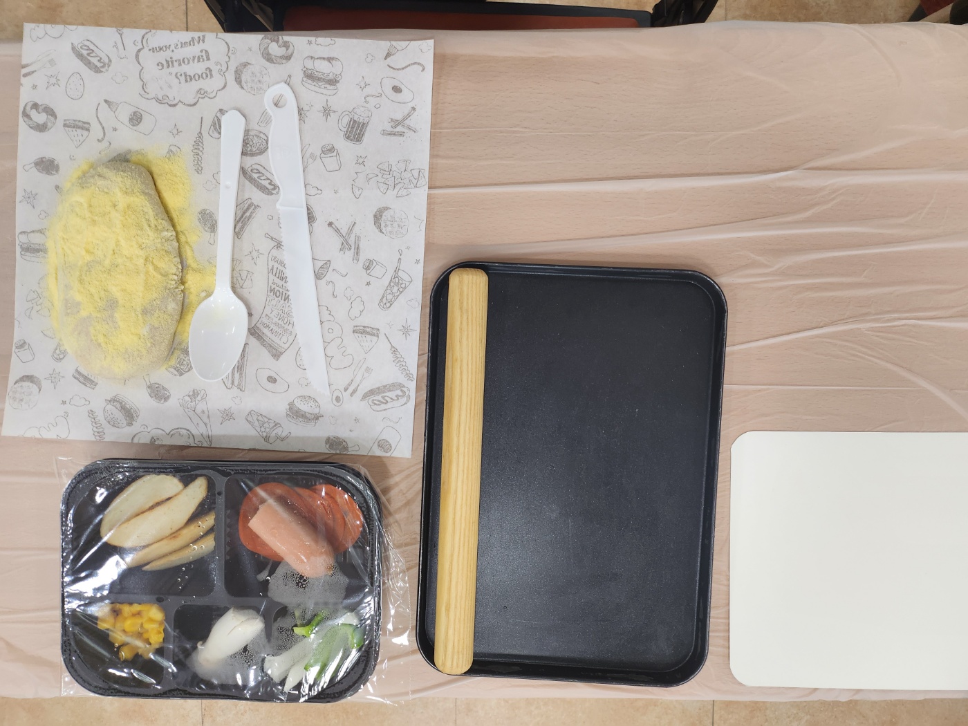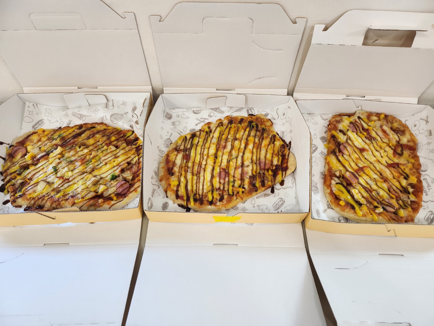 완성된 피자와 컵케익은 개별 포장 후