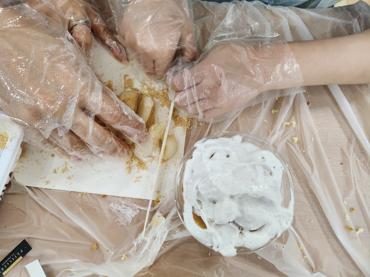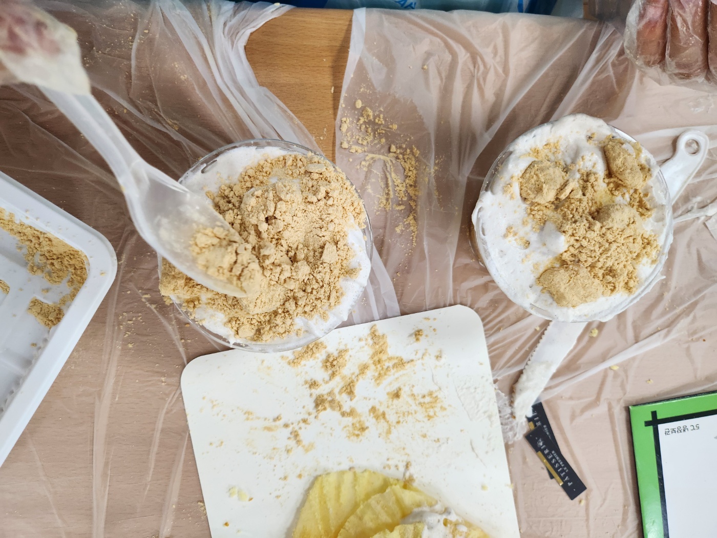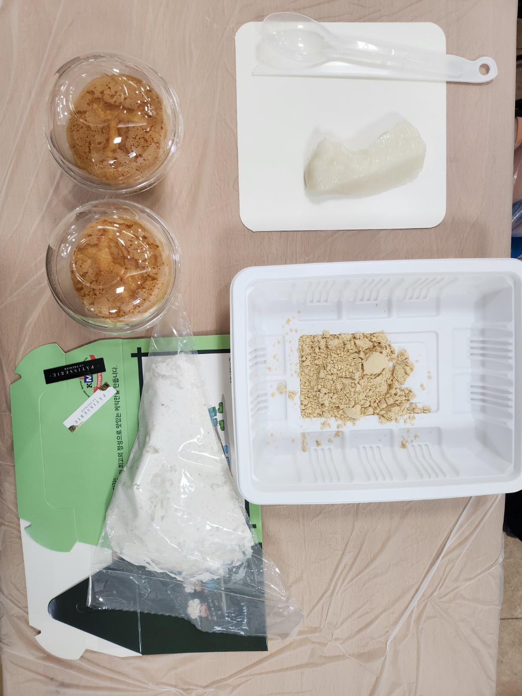콩가루를 묻힌 인절미를 크림 위에 올려 주면