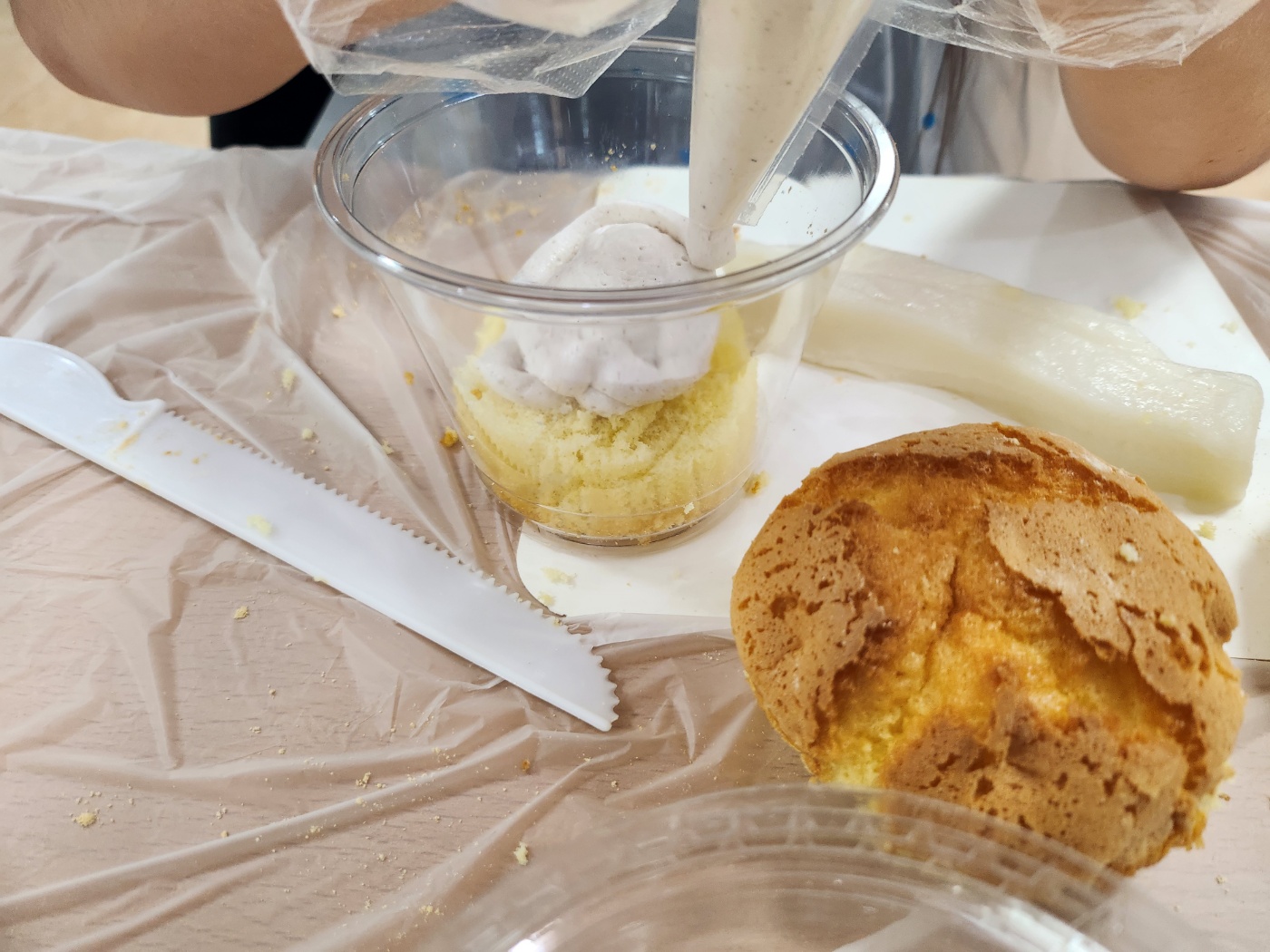 카스테라 빵을 반으로 자르고, 사이사이 크림을 짜주고,