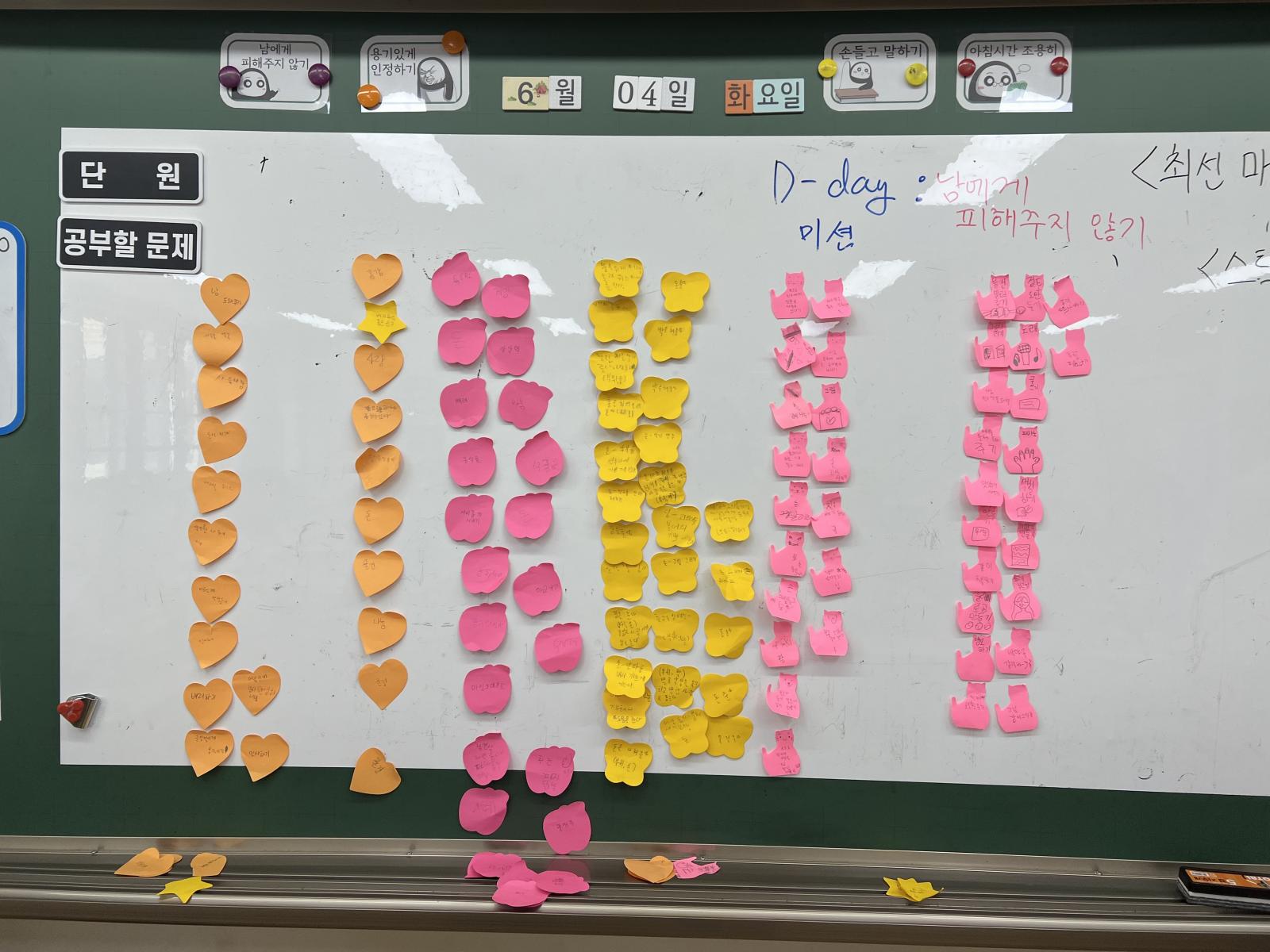 2교시에는 나눔을 실천할 수 있는 방법을 적은 잎사귀(하트, 별, 고양이, 사과 등) 모아