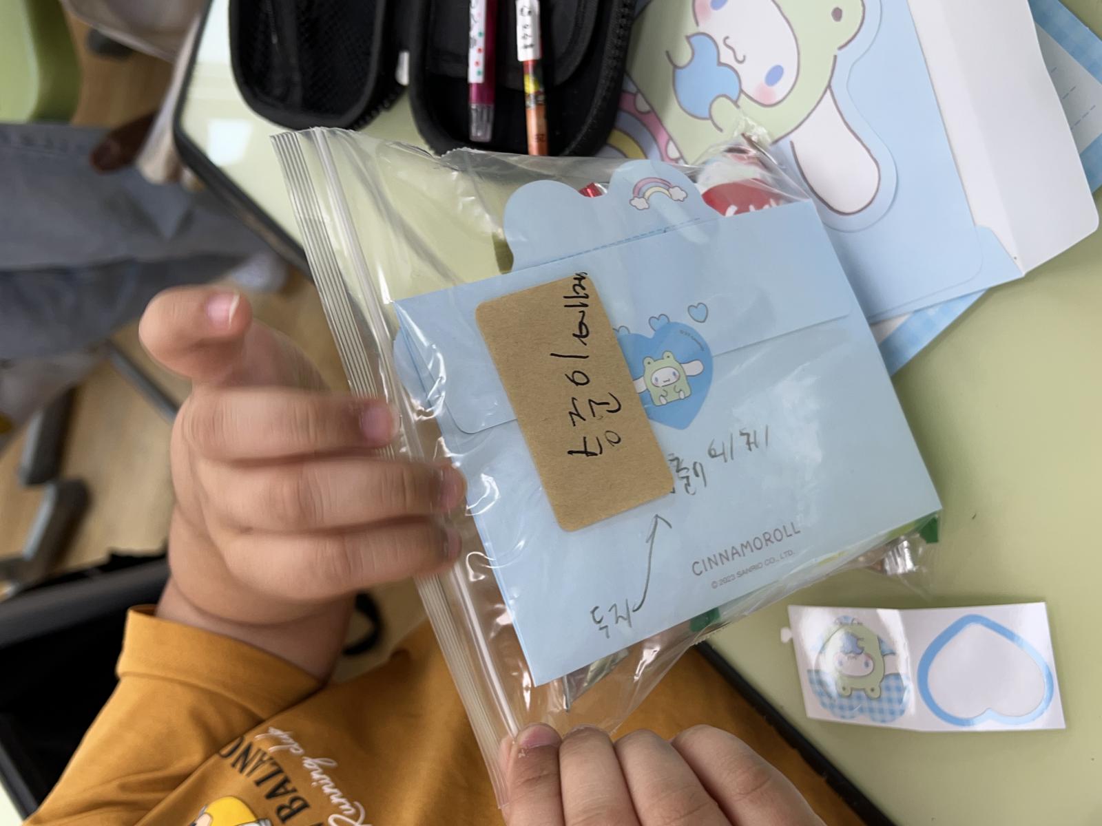 선물봉투 안에 편지를 담아 마음을 전하며 선물하기로 했어요.
