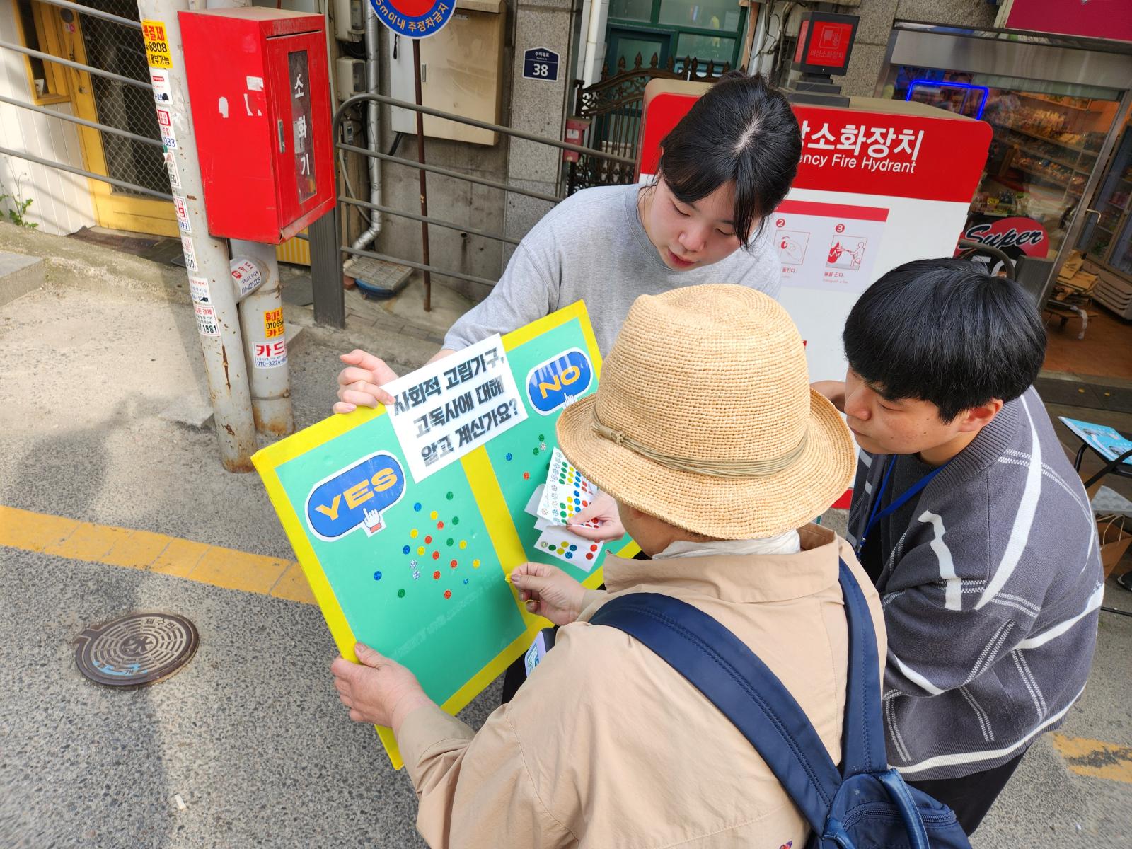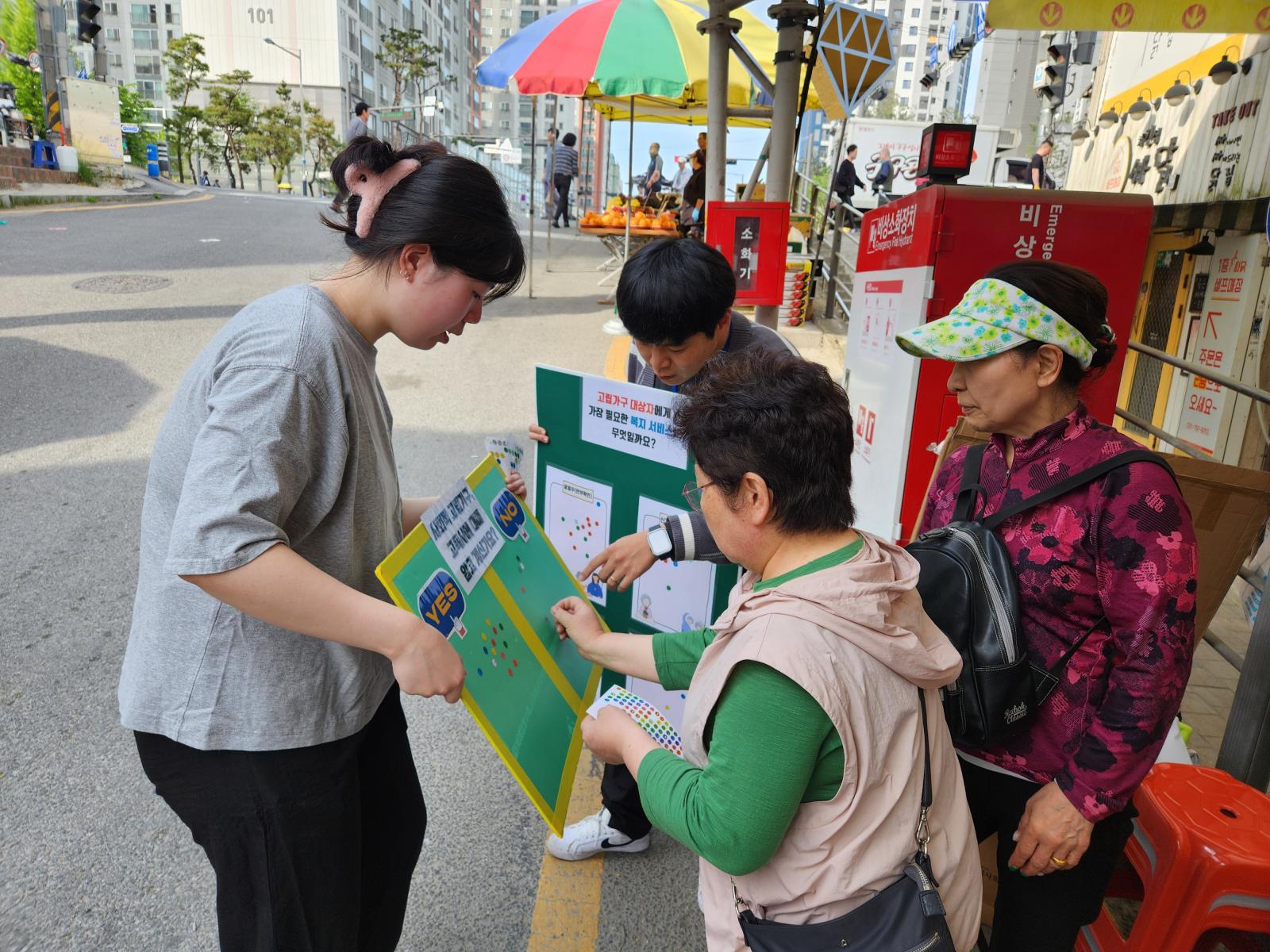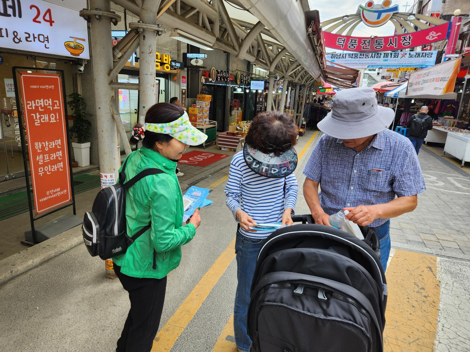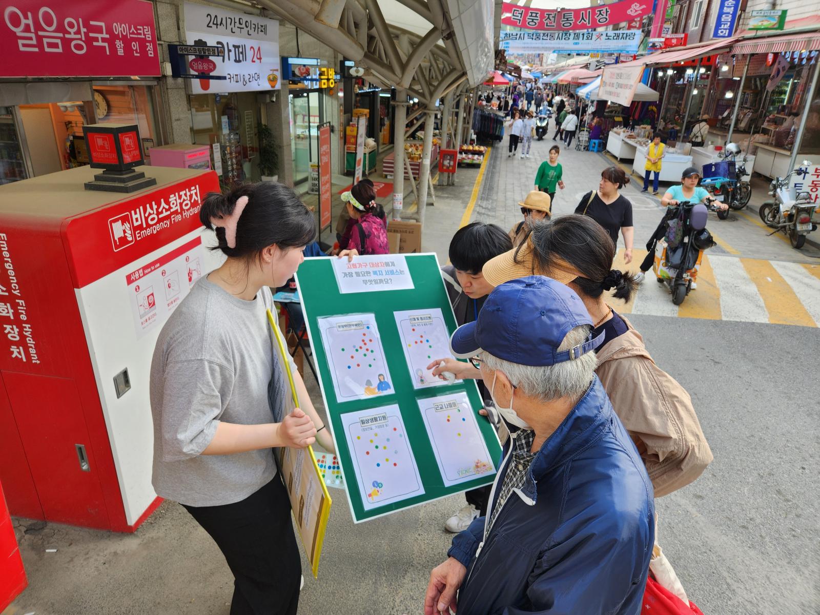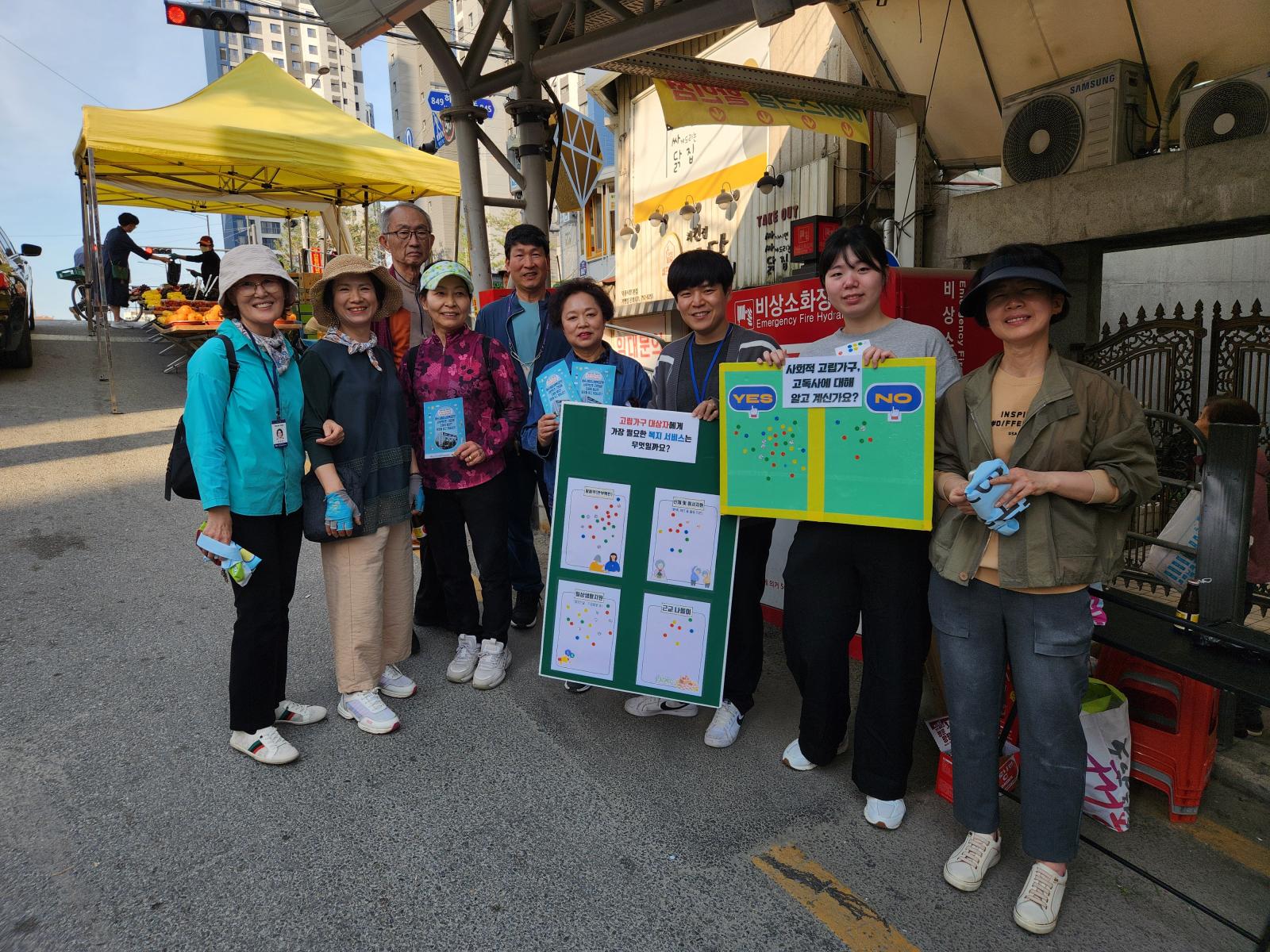 덕풍시장 장날에 맞춰 사업 홍보 및 고독사에 대한 인식조사(캠페인) 진행하였습니다.