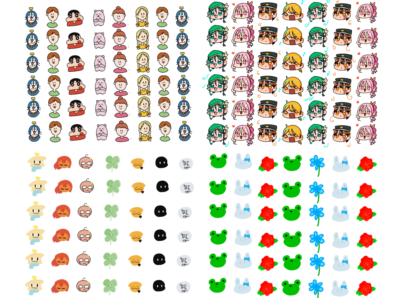 좋아하는 캐릭터들을 그려서 만든 패턴입니다.
