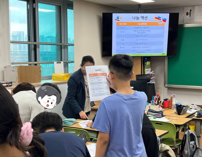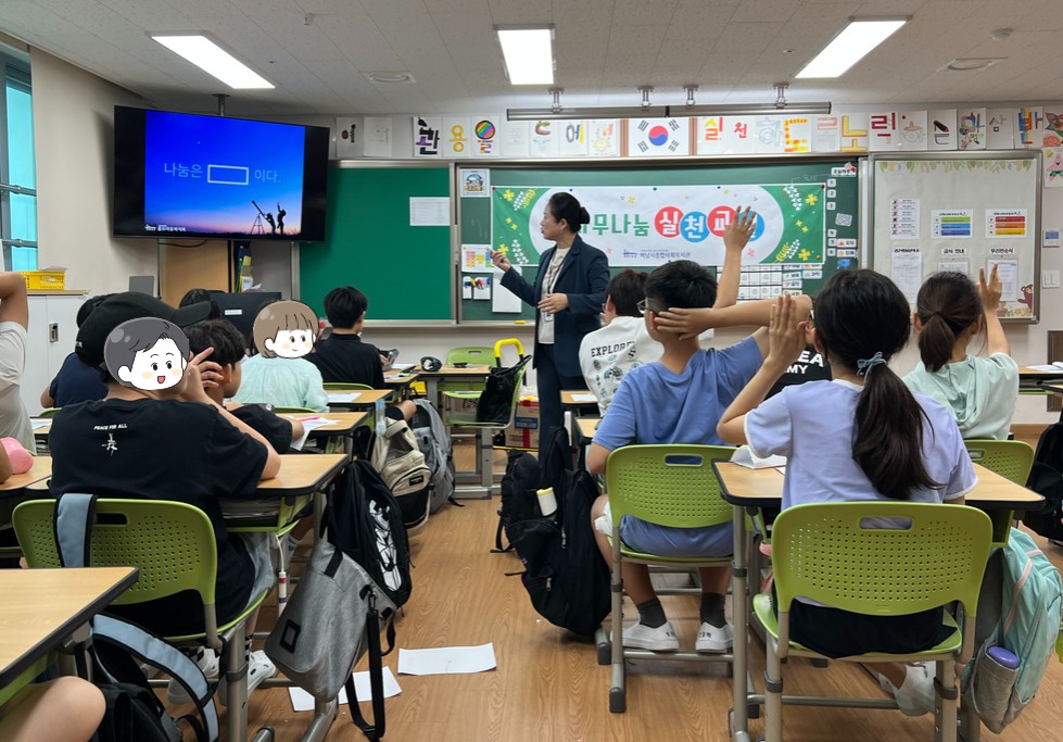 직접 몸을 움직이고 친구들과 나눔 액션을 실천해보며