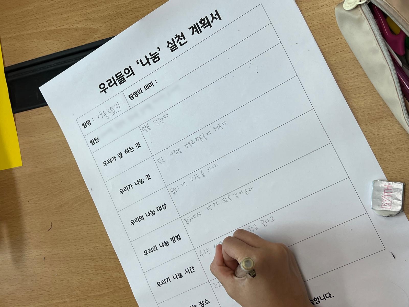 2교시에는 모둠별로 나눔계획서를 작성해보았는데요.