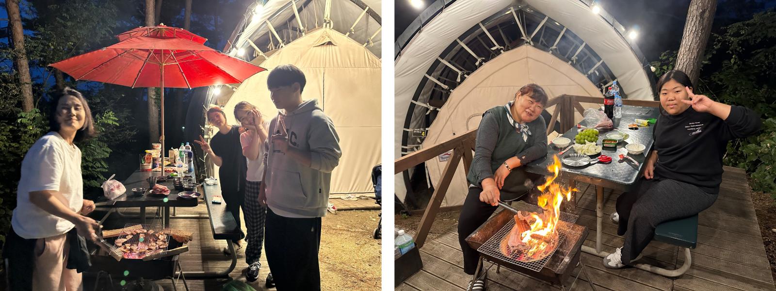 숯불 위에서 맛있게 구워진 고기로 허기진 배를 채우고 함께 불멍을 즐기며