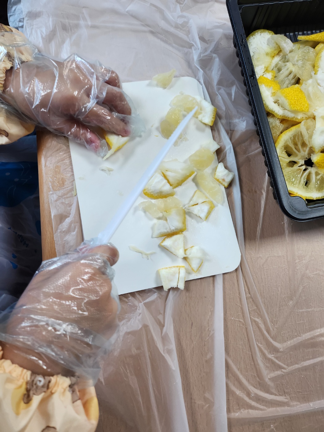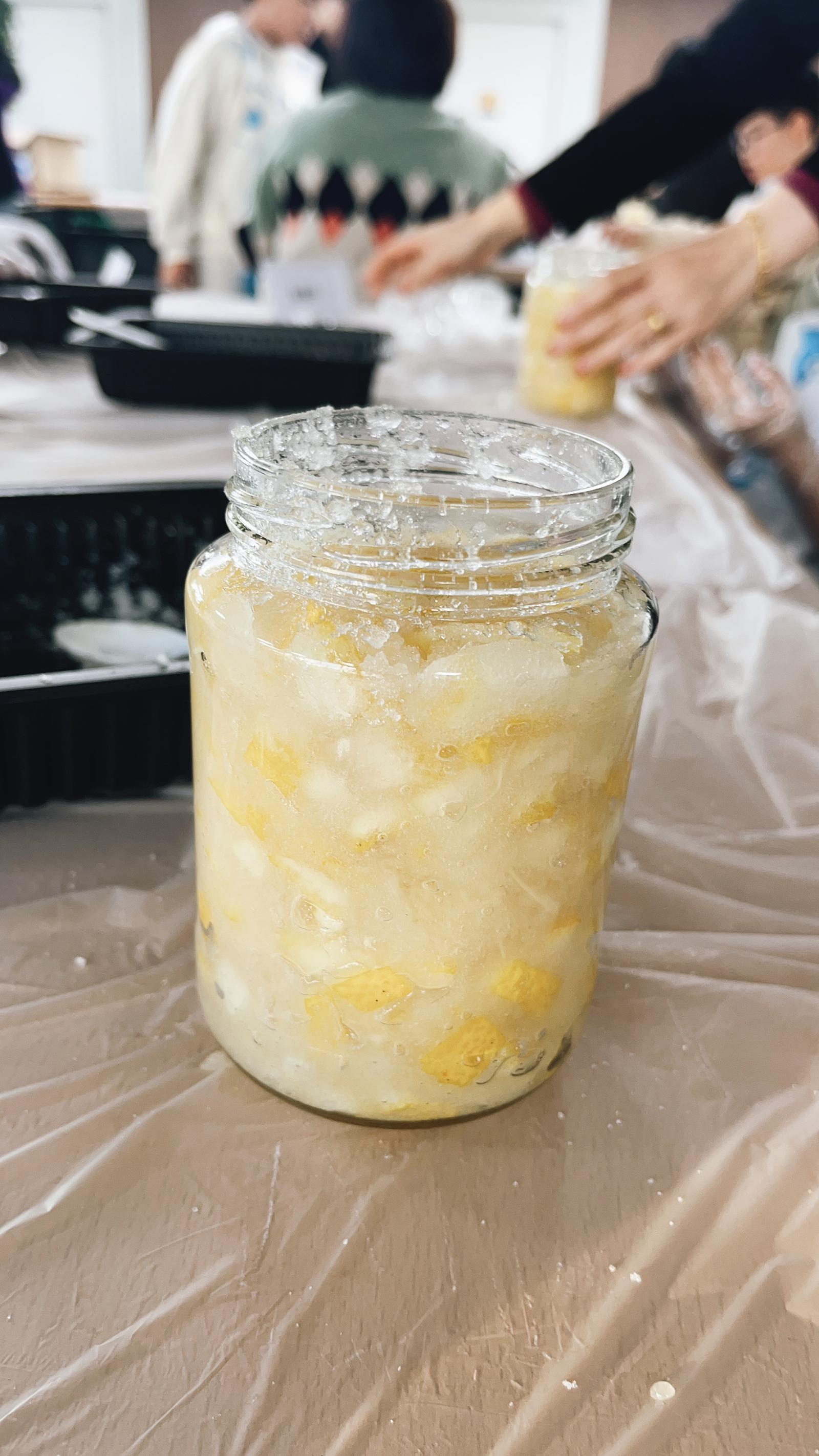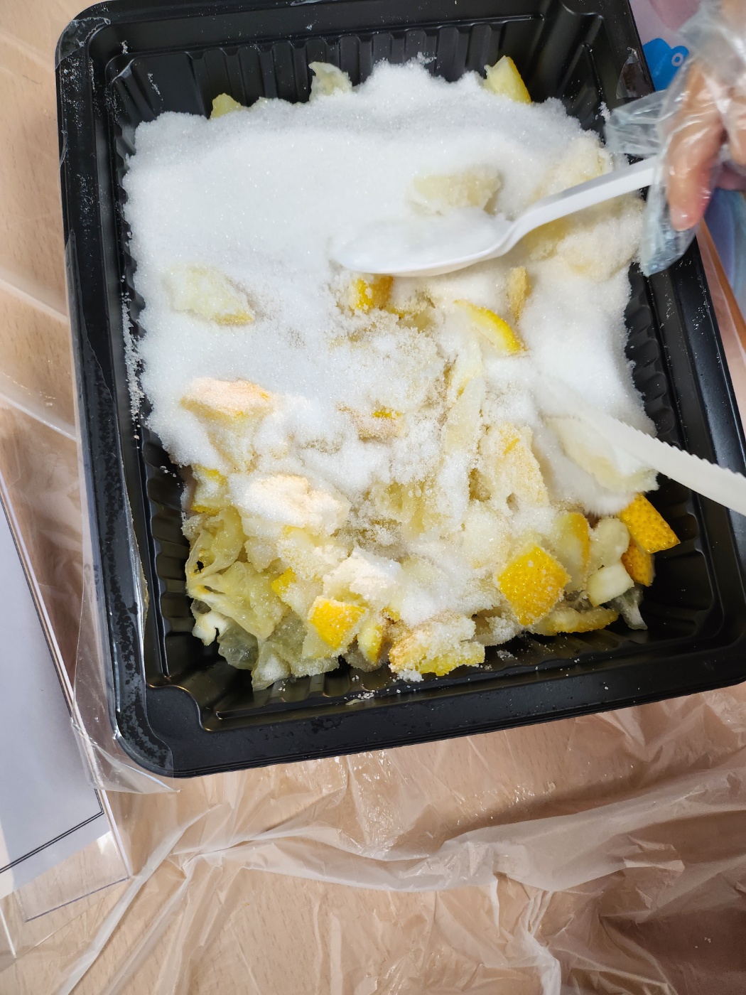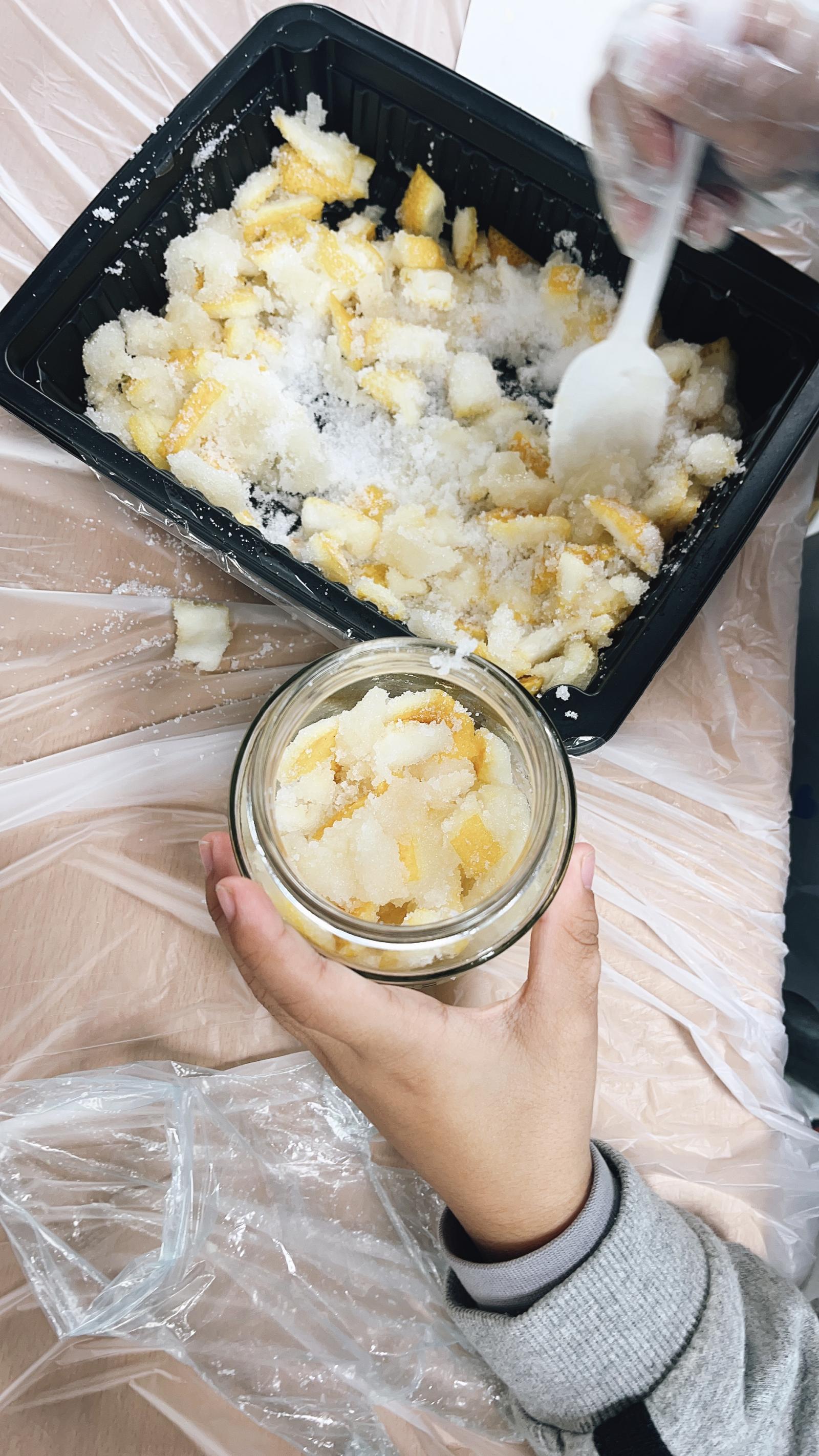 자른 유자와 설탕을 버무리고 병에 담아 맛있는 유자청을 완성하였습니다.