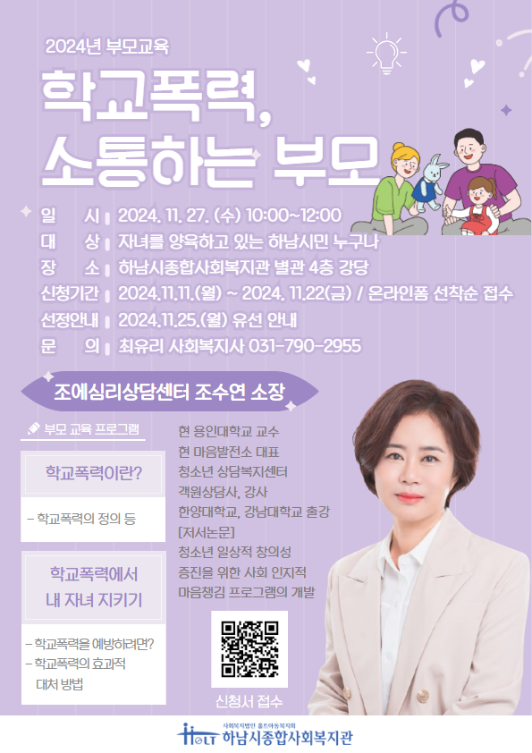 “부모와 함께하는 학교폭력 대처를 통해 자녀와 소통할 수 있는 창을 만들 수 있을 것 같아요.”