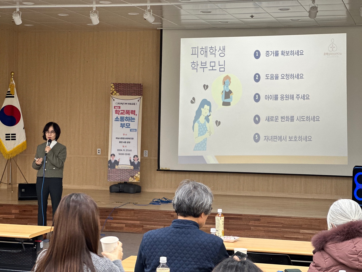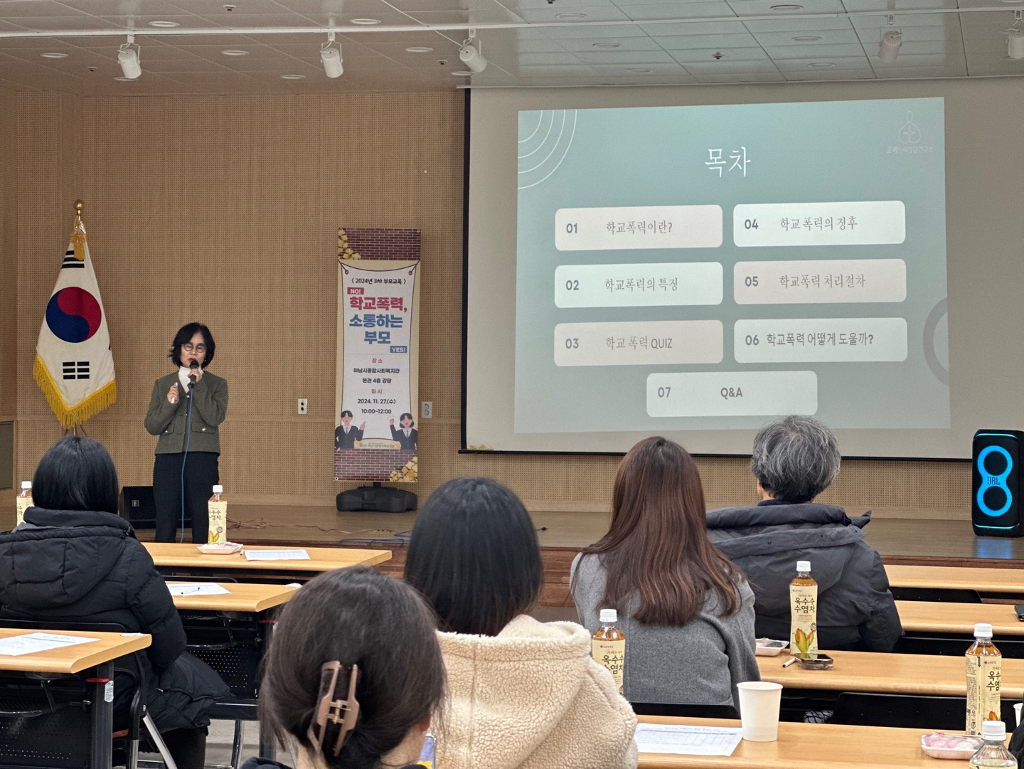 학교폭력의 정의부터 내 자녀를 지키고 대처하는 방법까지 알려드리기 위한 3차 부모교육이 진행되었습니다!