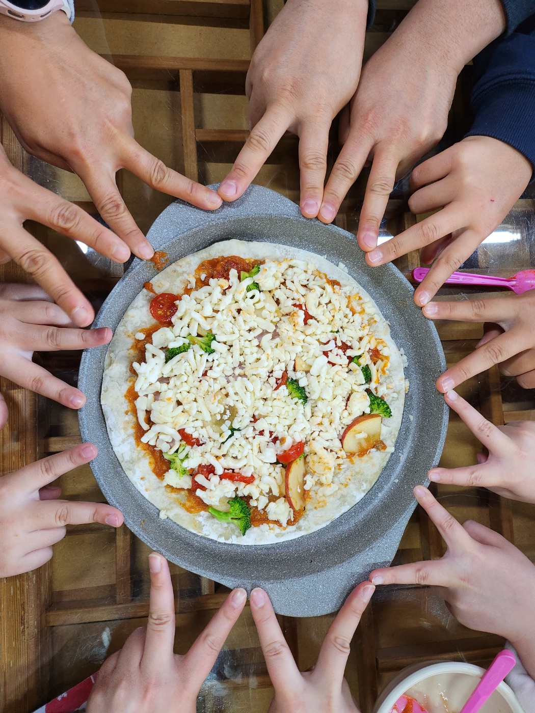 각 조별로 맛있는 피자를 만들고 난 후 점심식사 시간~