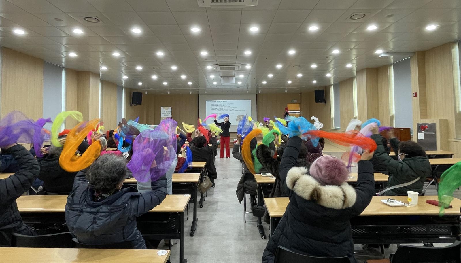 또한 알록달록한 스카프를 활용해 노래에 맞춰 몸을 움직여보는 시간도 가졌습니다!
