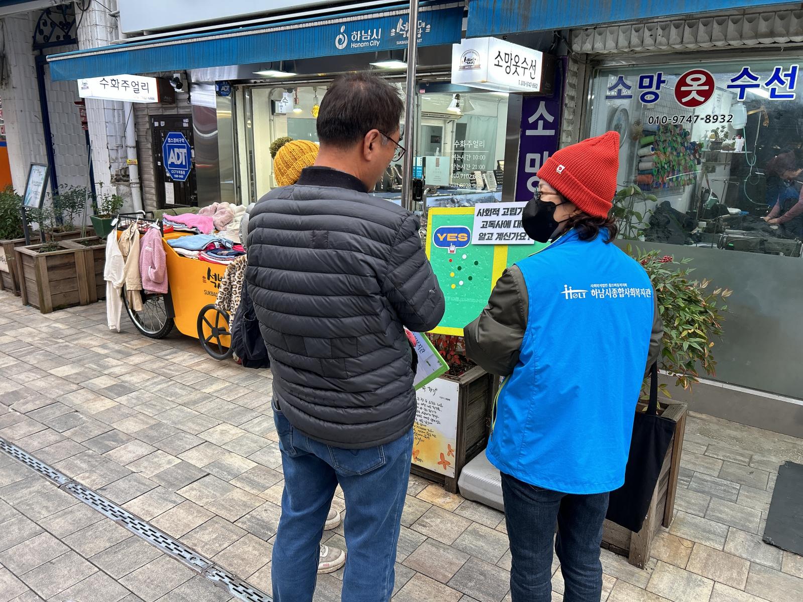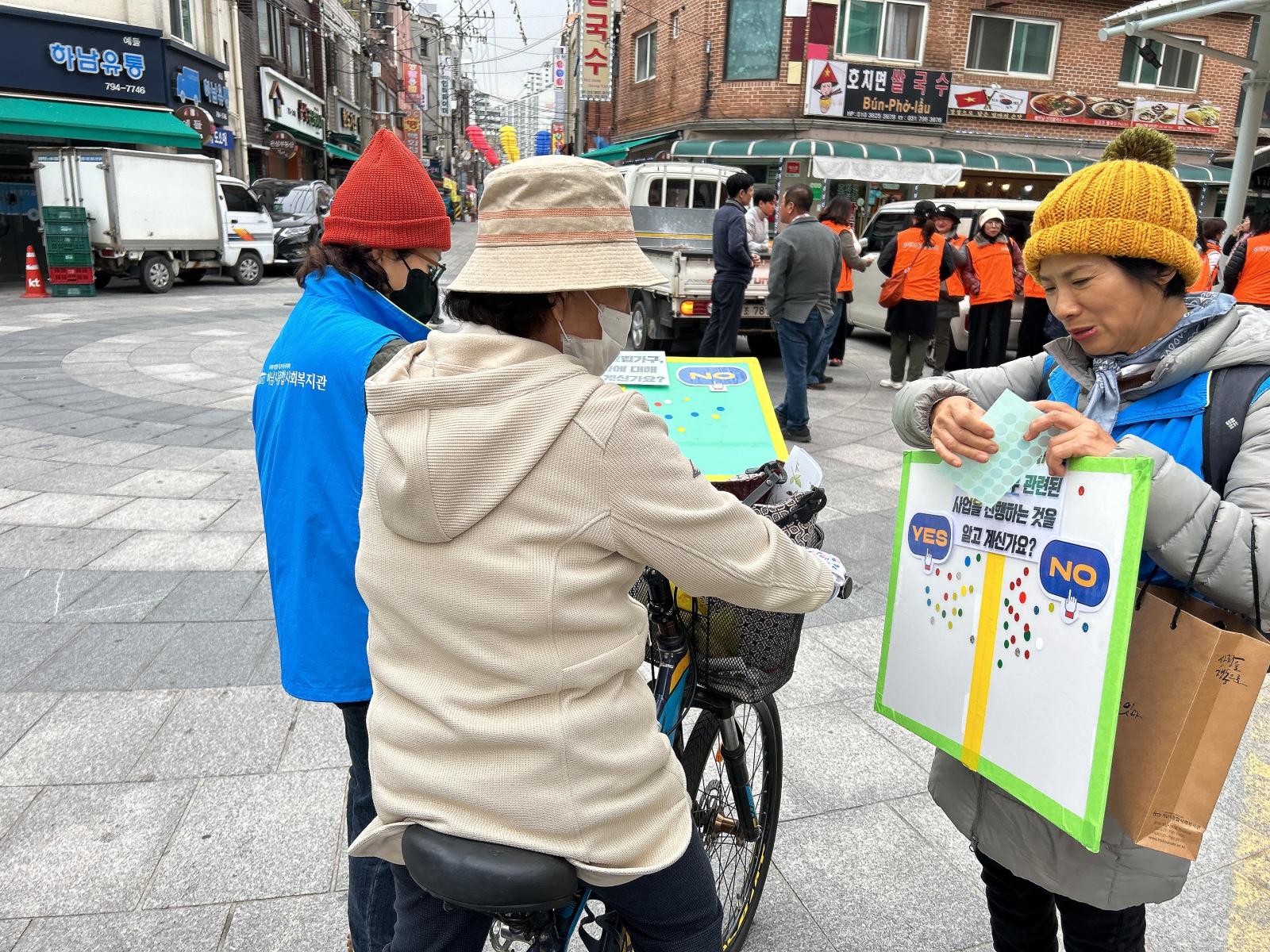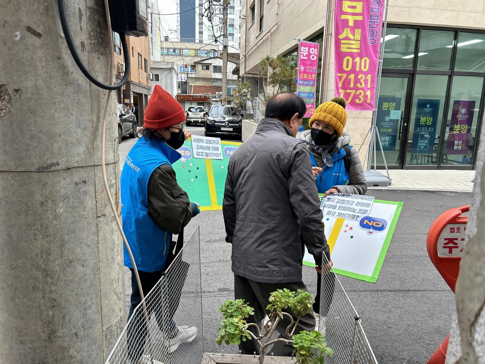 이번 사업 홍보 및 고독사에 대한 인식조사는 신장 전통시장 근처에서