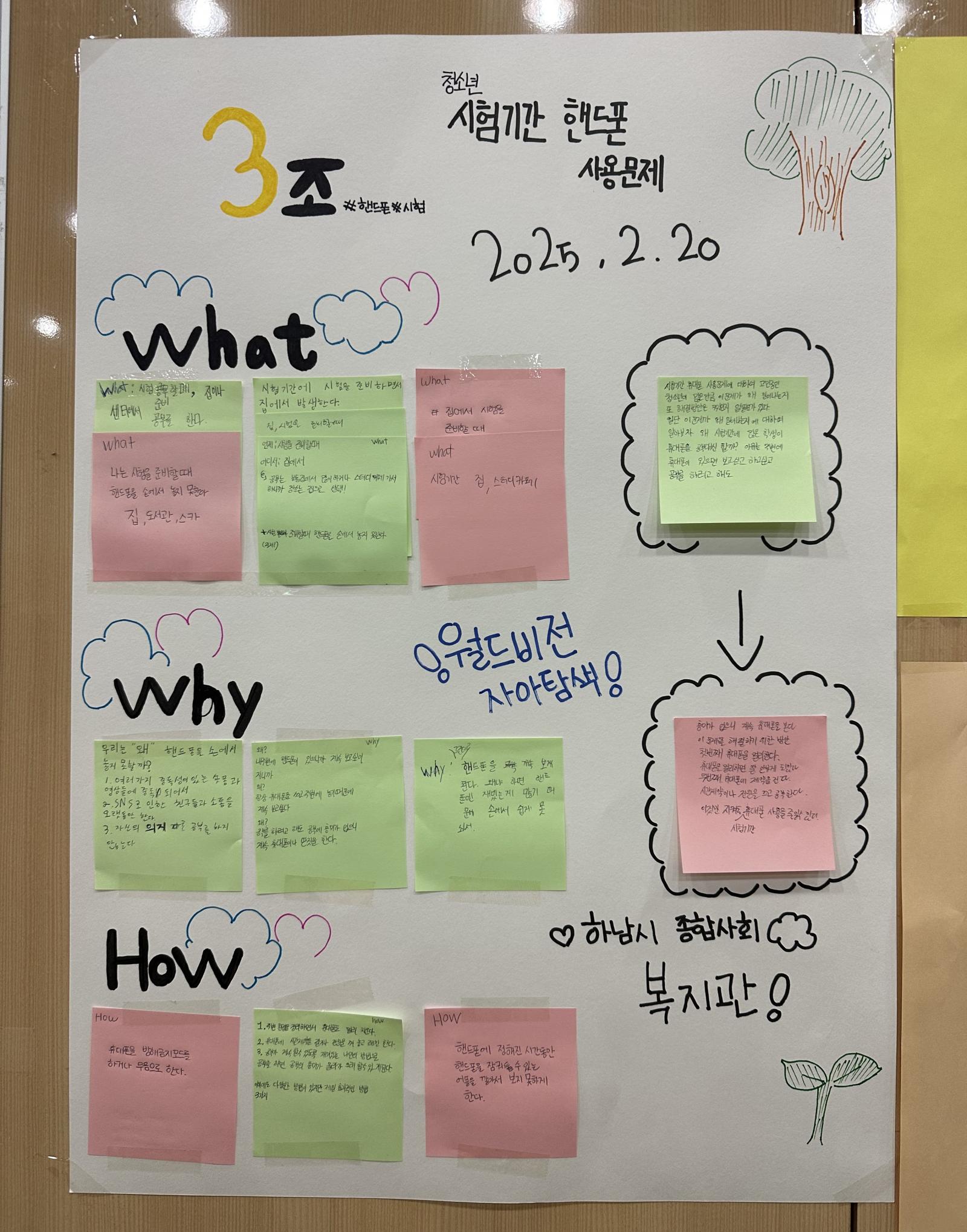 우리 조는 ‘청소년 시험기간 스마트폰 사용문제’를 주제로 문제를 정의하고,