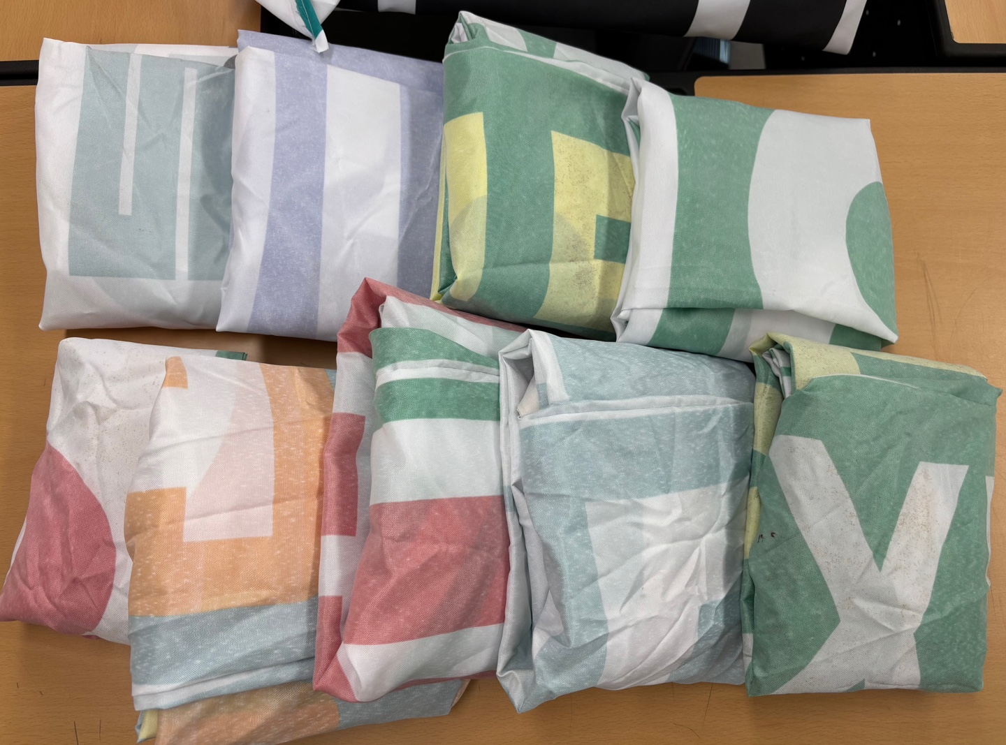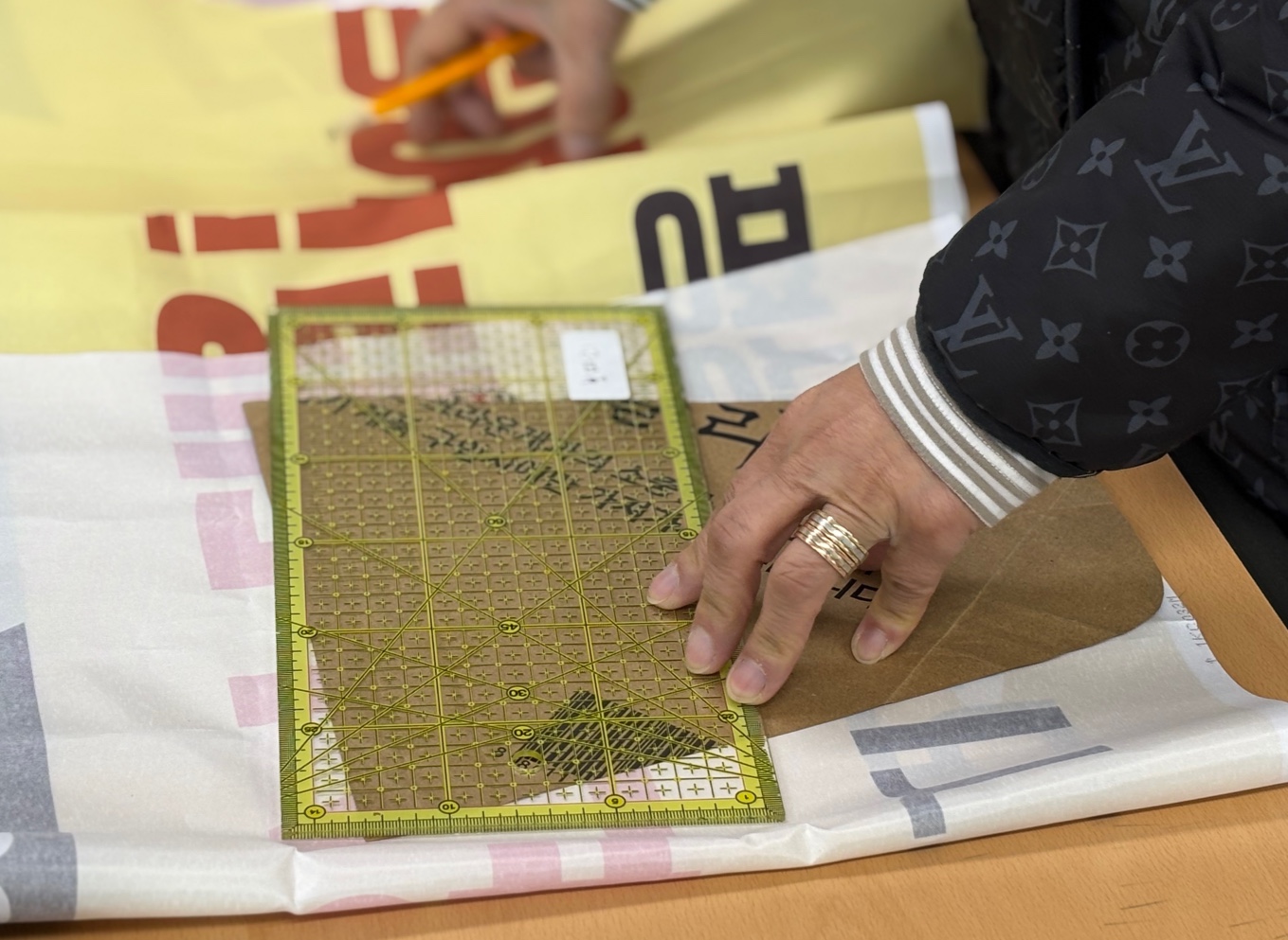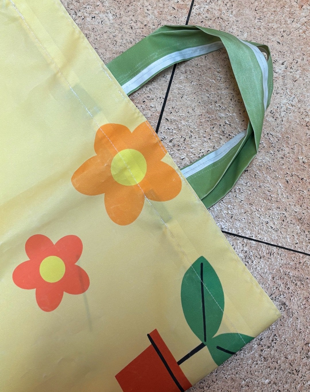예쁘게 완성된 폐현수막 장바구니는 덕풍시장과 협약을 통해