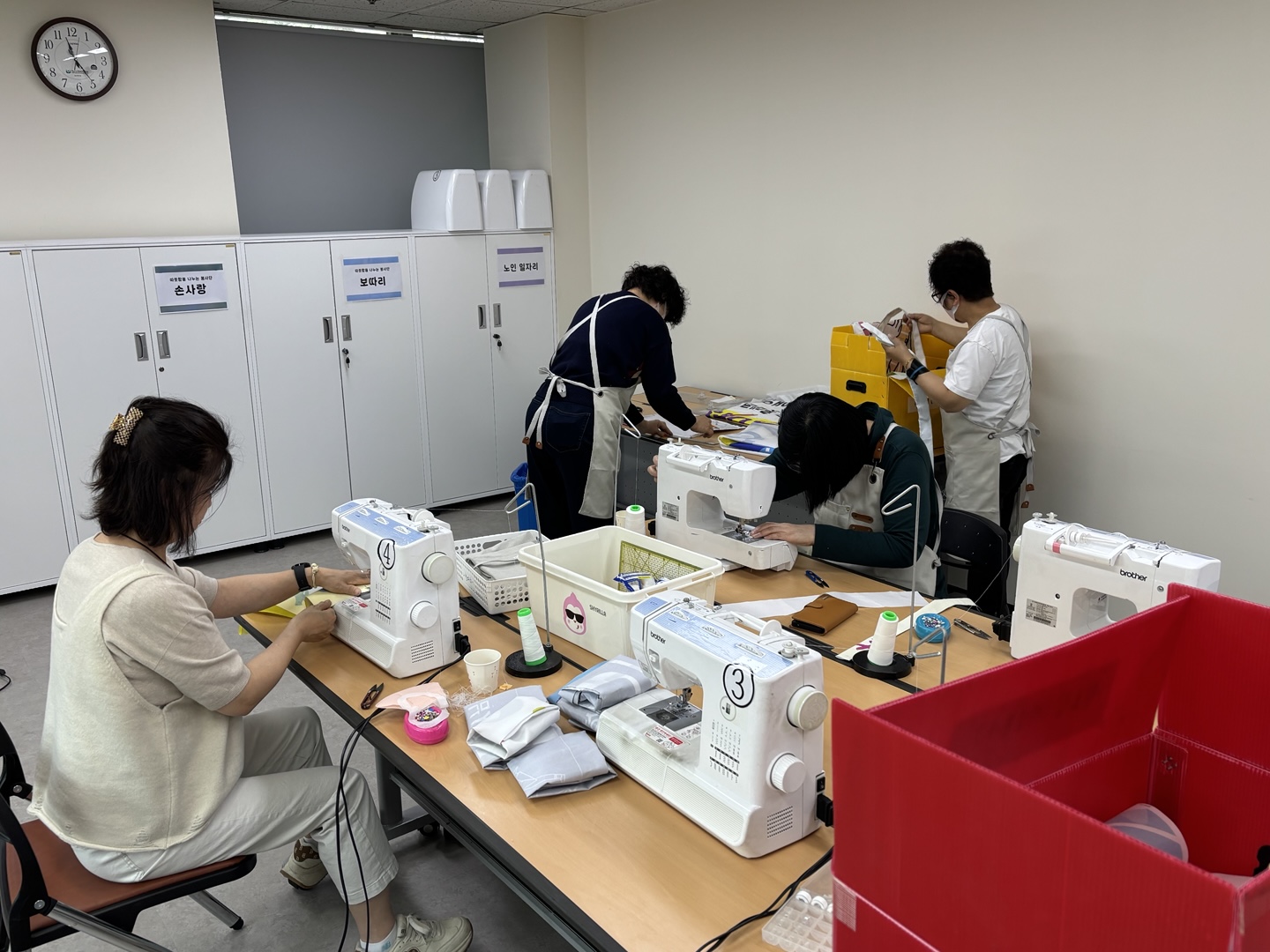 적당한 크기를 재서 재단하고, 박음질 하는 모든 과정들을 살펴보니