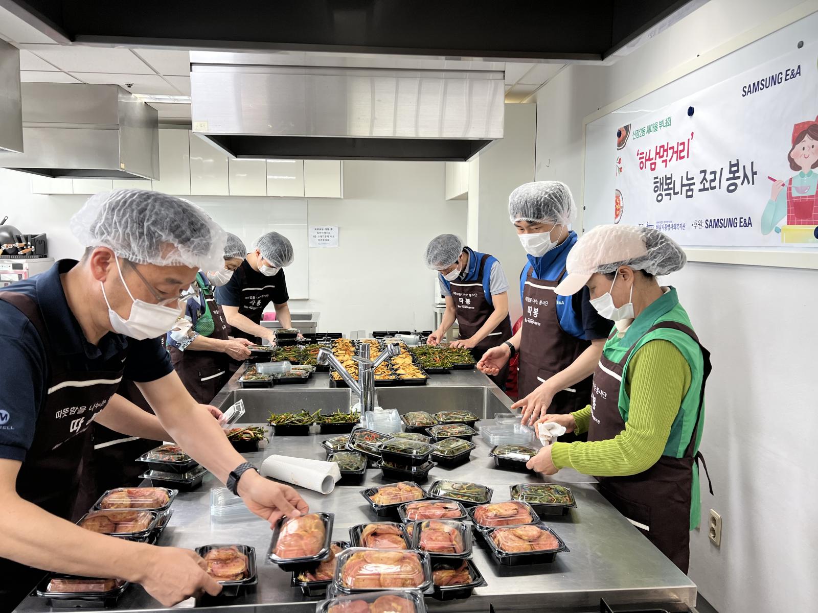 5월 밑반찬 조리봉사에는 신장2동 새마을부녀회 4명, 삼성E&A 안전팀 3명, 삼성E&A 품질팀 2명이 참여해주셨습니다.