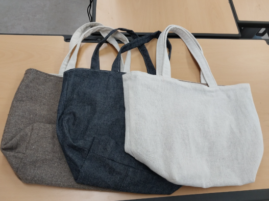 이번 달에는 폐현수막 장바구니와 자투리 천 도시락 가방 만들기를 동시에 작업해보았습니다.