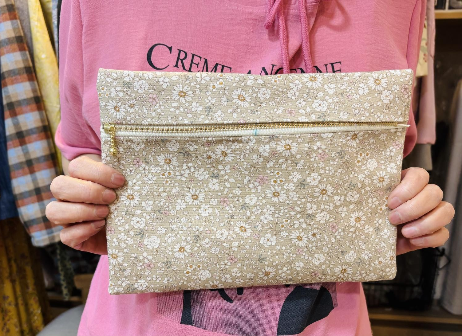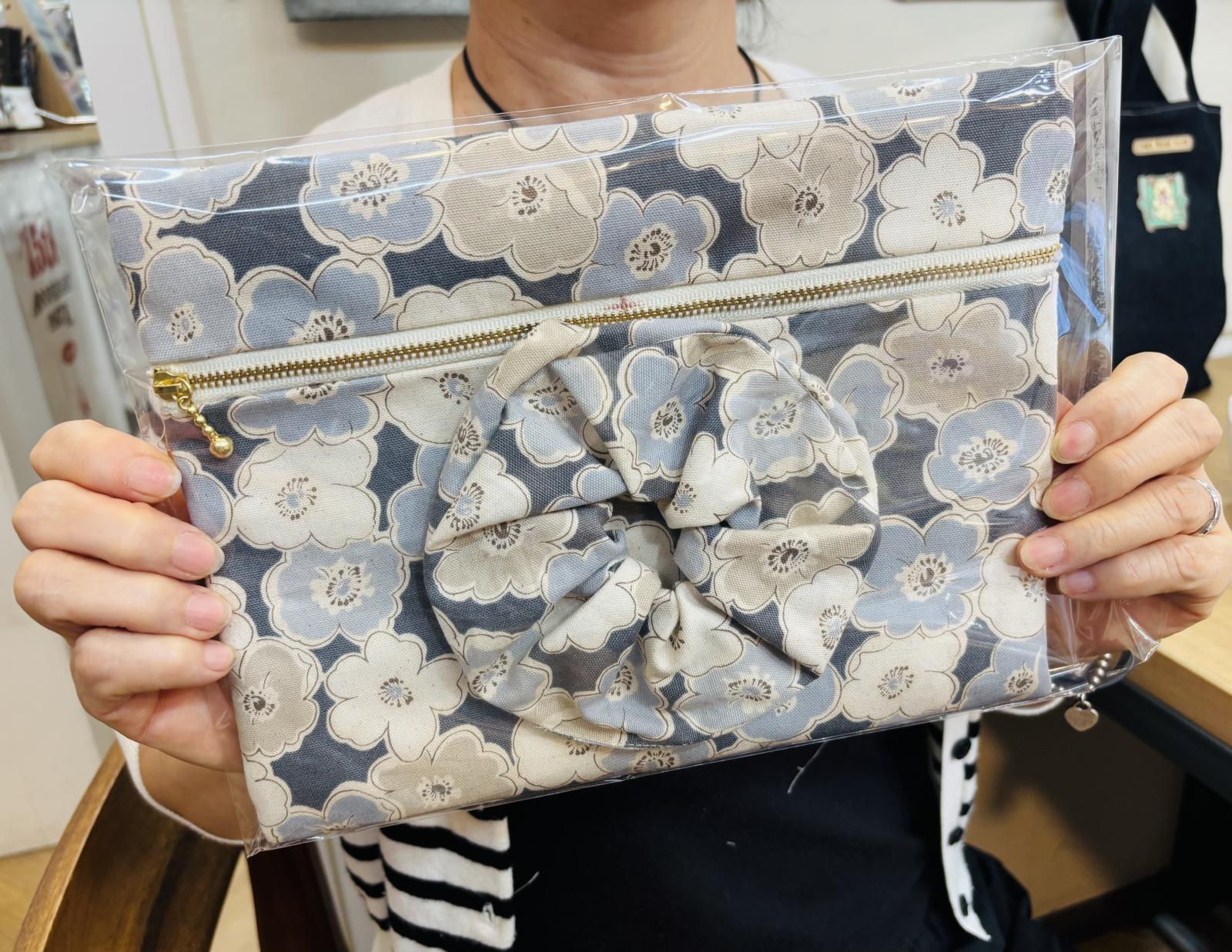 두 가지 원단을 활용하여 파우치와 스크런치를 만들어 보았는데 어떤가요?