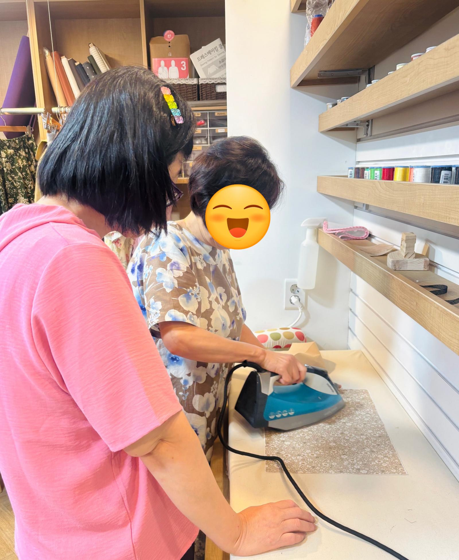 강사님의 지도 하에 원단을 크기에 맞춰 디자인하고 재단해보았는데요,