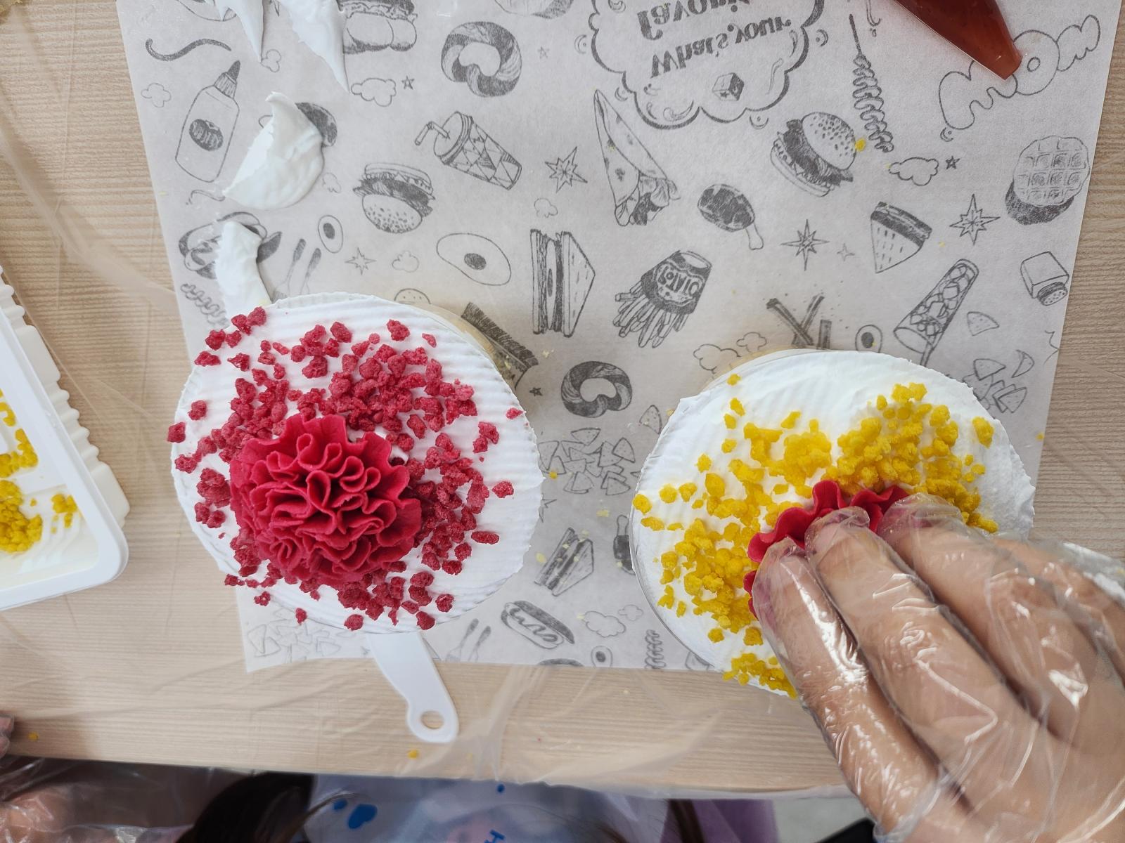 그 위에 토핑 가루를 뿌리고 이쁜 카네이션을 올리면 끝!!