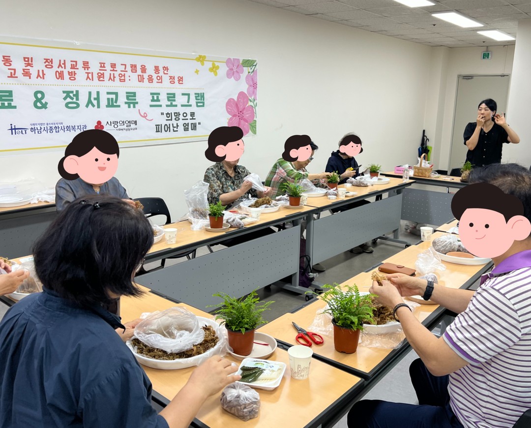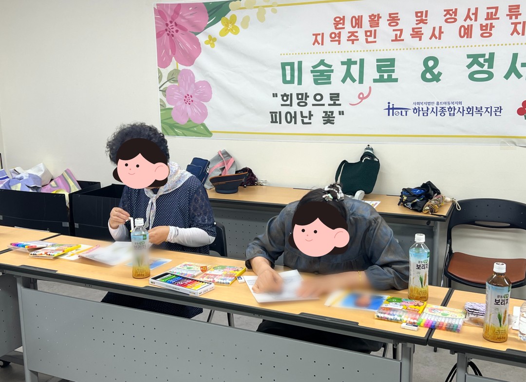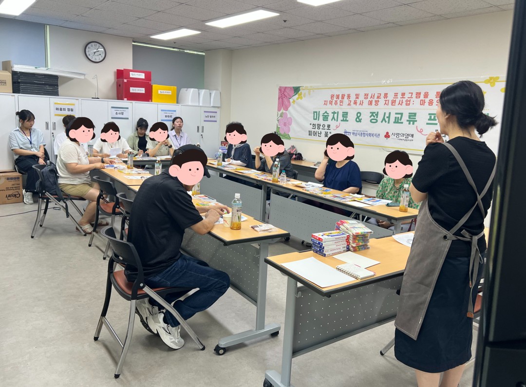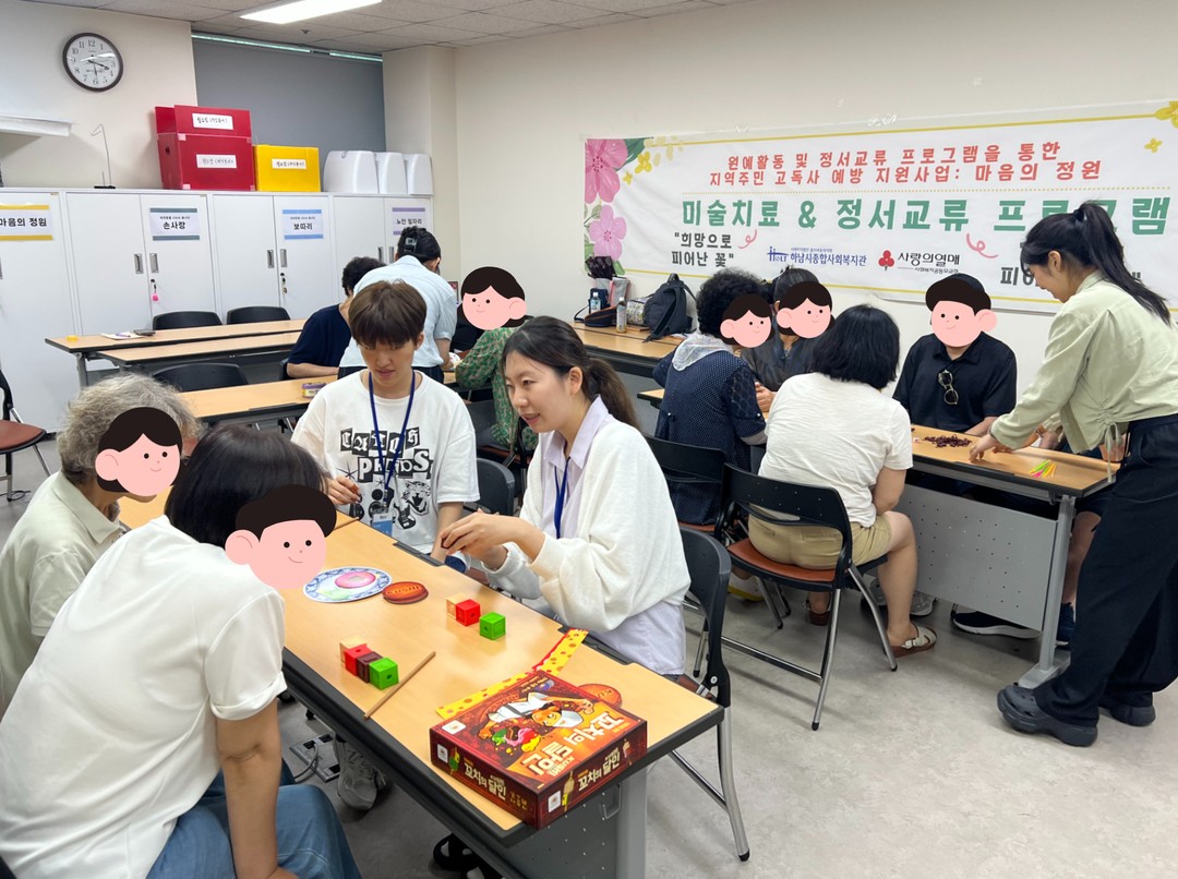 미술치료와 정서교류 프로그램이 각 1시간씩 진행되었습니다.