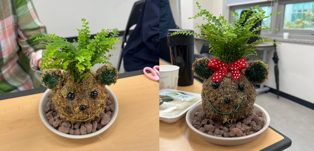 곰돌이 모양의 토피어리를 정성껏 제작하였습니다.