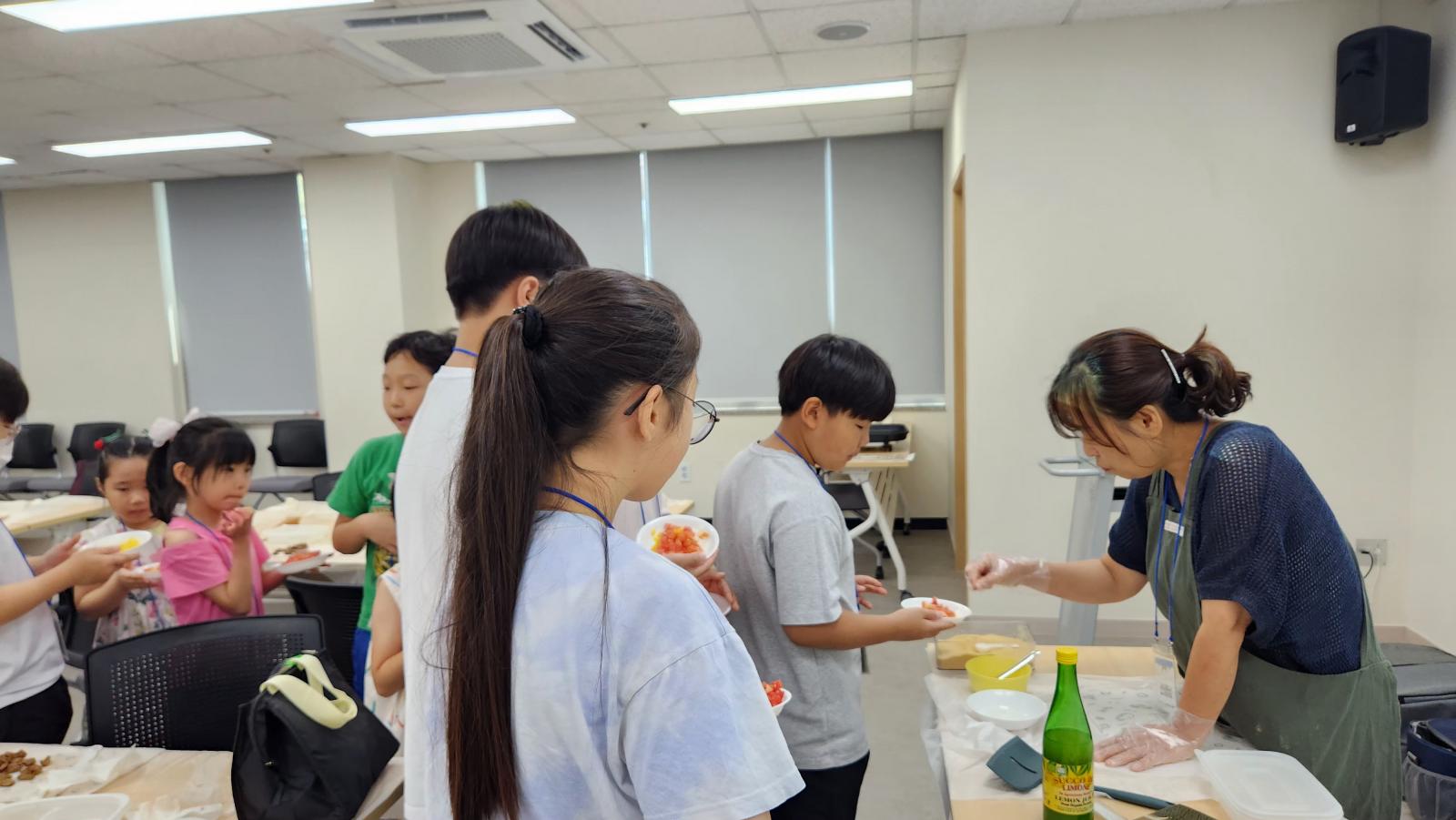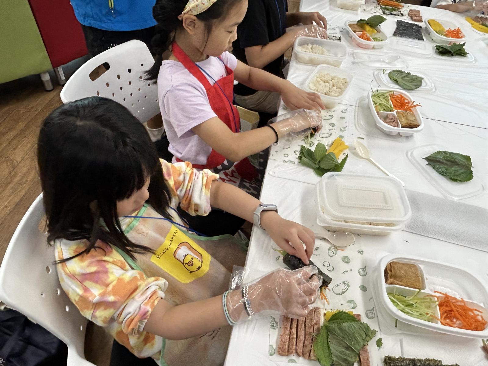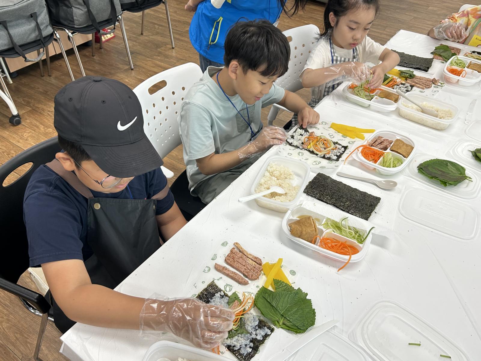 이제 더 재밌는 활동인 김밥 만들기를 시작했어요!