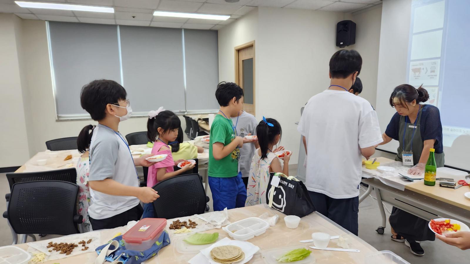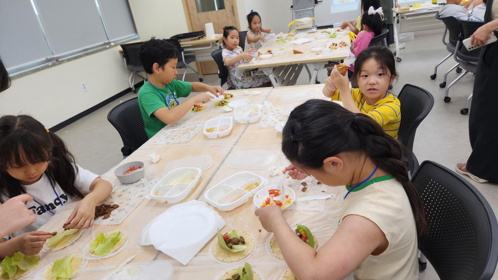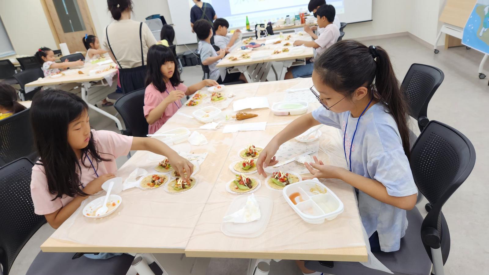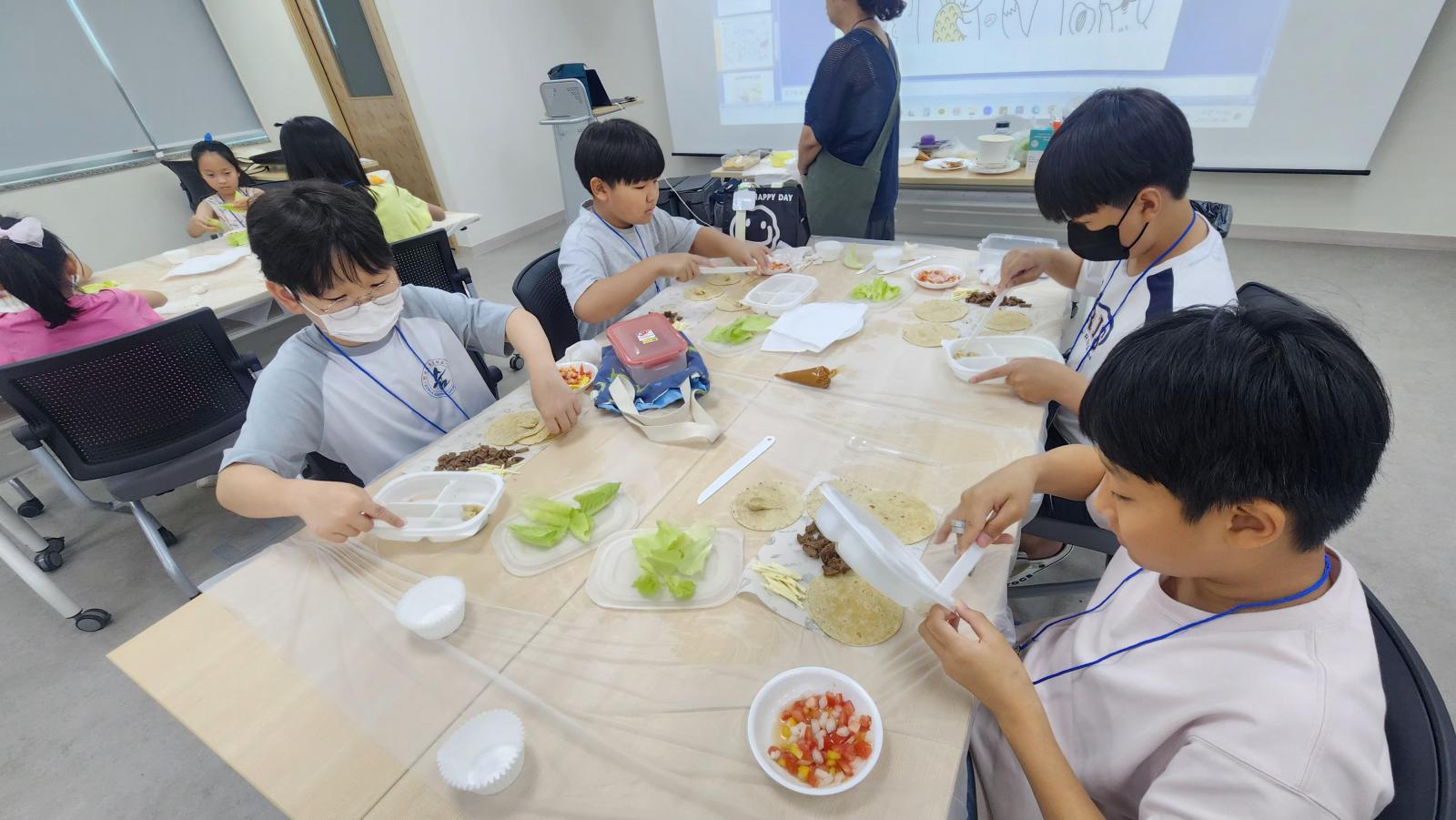 완성된 타코를 보고 배고파요 얼른 먹고 싶어요 등의 다양한 반응을 보이는 친구들이 많았어요