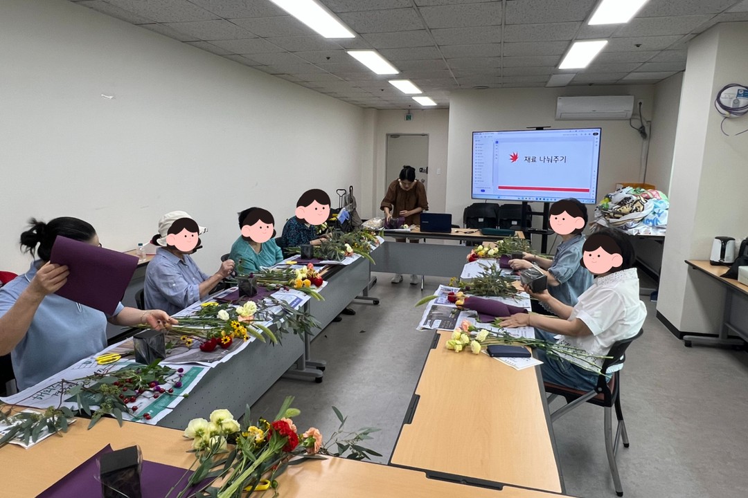 가을과 어울리는 꽃을 가지고 꽃꽂이해보는 시간을 가졌습니다.