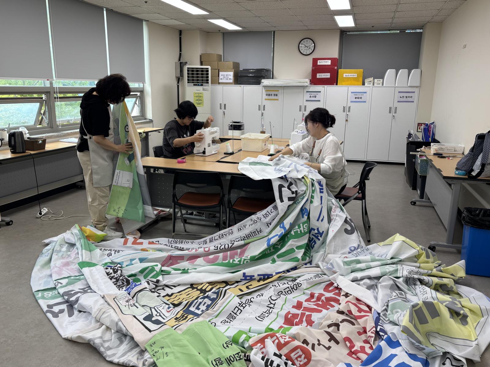 이번 활동은 하남시청에서 폐현수막을 활용한 차양막이 필요하다는 요청을 받아 진행하게 되었는데요,
