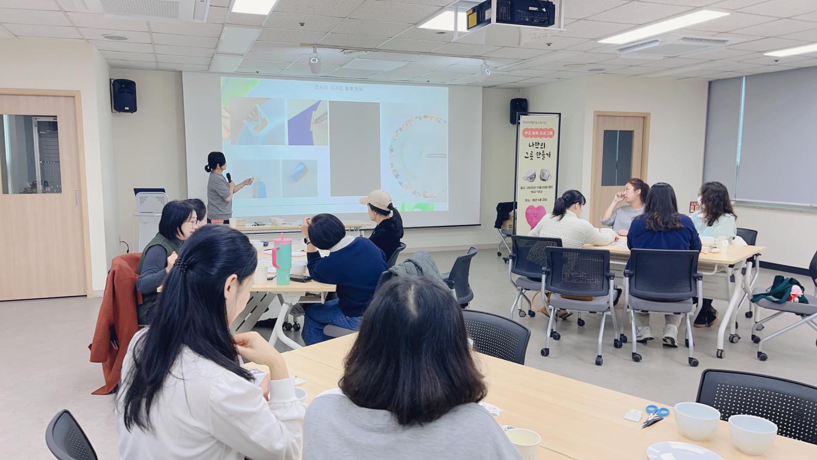 2025 부모 힐링 프로그램 '나만의 그릇 만들기' 작성일 : 2025.11.25 | 조회수 : 356 안녕하세요.하남시종합사회복지관입니다.25년 11월 25일 (화) 복지관 치료실 이용 아동 부모님을 대상으로 부모 힐링 프로그램을 진행하였습니다.완성된 나만의 그릇을 보며 작은 성취감과 효능감을 느낄 수 있었던 시간이었습니다.추운 날씨에도 불구하고 참여해 주신 부모님들께 감사드리며 더 좋은 프로그램으로 만나 뵙기를 바라겠습니다.