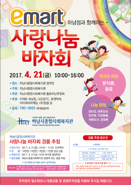 이에 지역주민들의 많은 참여속에 바자회행사 풍성하게 진행될 수 있도록 지역주민들의 많은 관심과 성원 부탁드립니다.