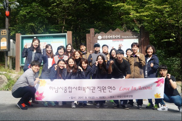 2017년 복지관 직원 연수 실시 작성일 : 2017.09.18 | 조회수 : 12994 ★ 2017년 복지관 직원 연수 실시 ☞ 일 시 : 2017. 9. 15(금) ~ 16(토) 1박 2일 ☞ 장 소 : 양평산음휴양림 ☞ 목 적 : 상반기 복지관 업무회의 및 직원단합도모 ※ 참석해주신 모든 직원분들에게 감사드립니다.
