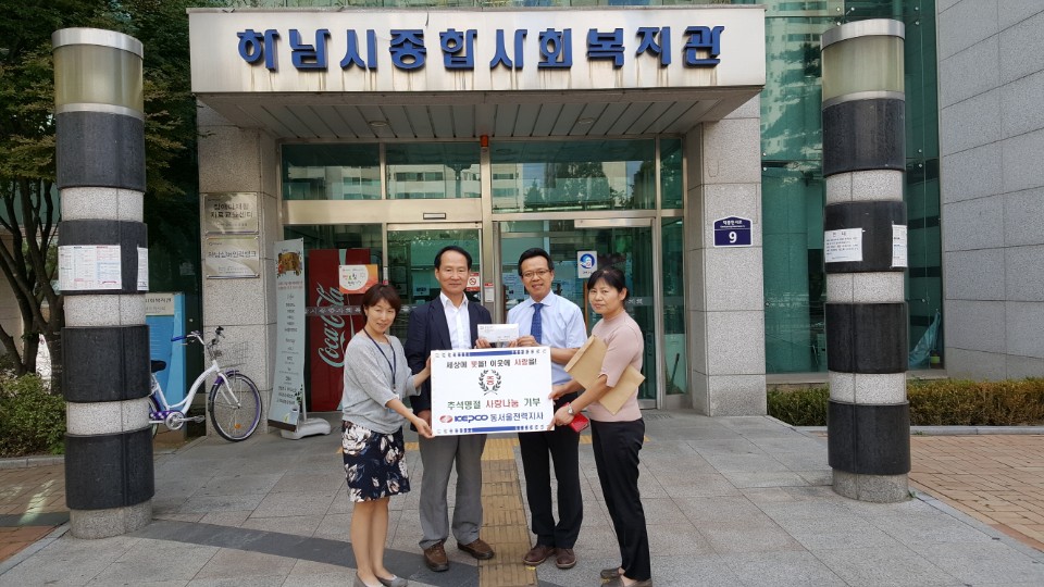 한국전력공사 동서울전력지사에서는 꾸준히 하남시 저소득 가정을 돕기위해 복지관에 후원을 하고 있습니다.